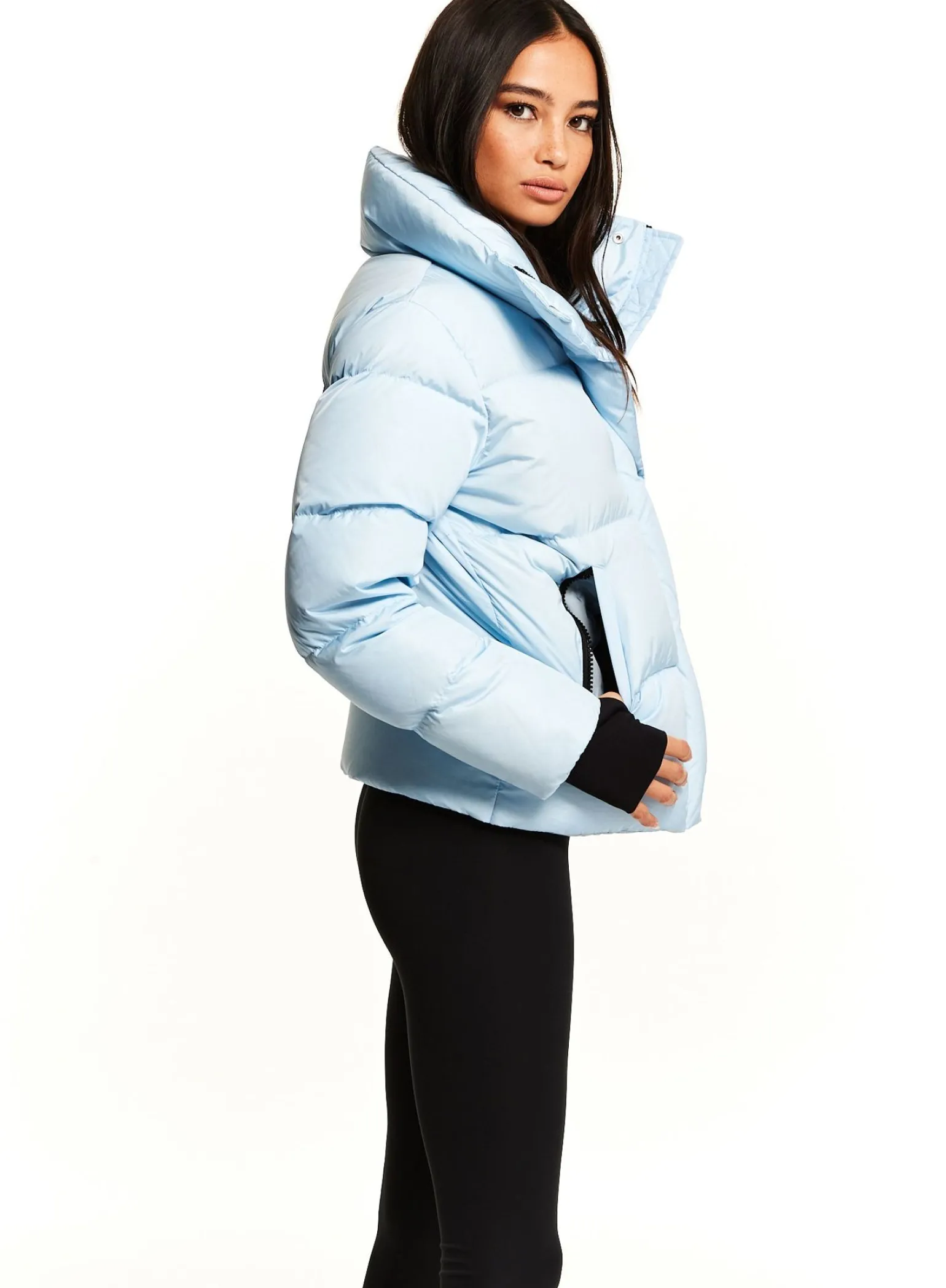 This Down Puffer Jacket Is Crafted From A Densely Woven Nylon, And Filled With Fine White Goose Down To Achieve Warmth And An Ultra Soft Feel. The Andi Is Intended To Fit A Bit Oversized With A Boxy Yet Flattering Fit. It Is Lightweight, Wind Resistant, And Water-Repellent. The Jacket Features Tonal Hardware, Tonal Spandex Wrist Cuffs With Thumbholes, A Secondary Color Lining, A Stand Collar, Center Front Zip And Snap Placket Closure, And Lower Zip Pockets.