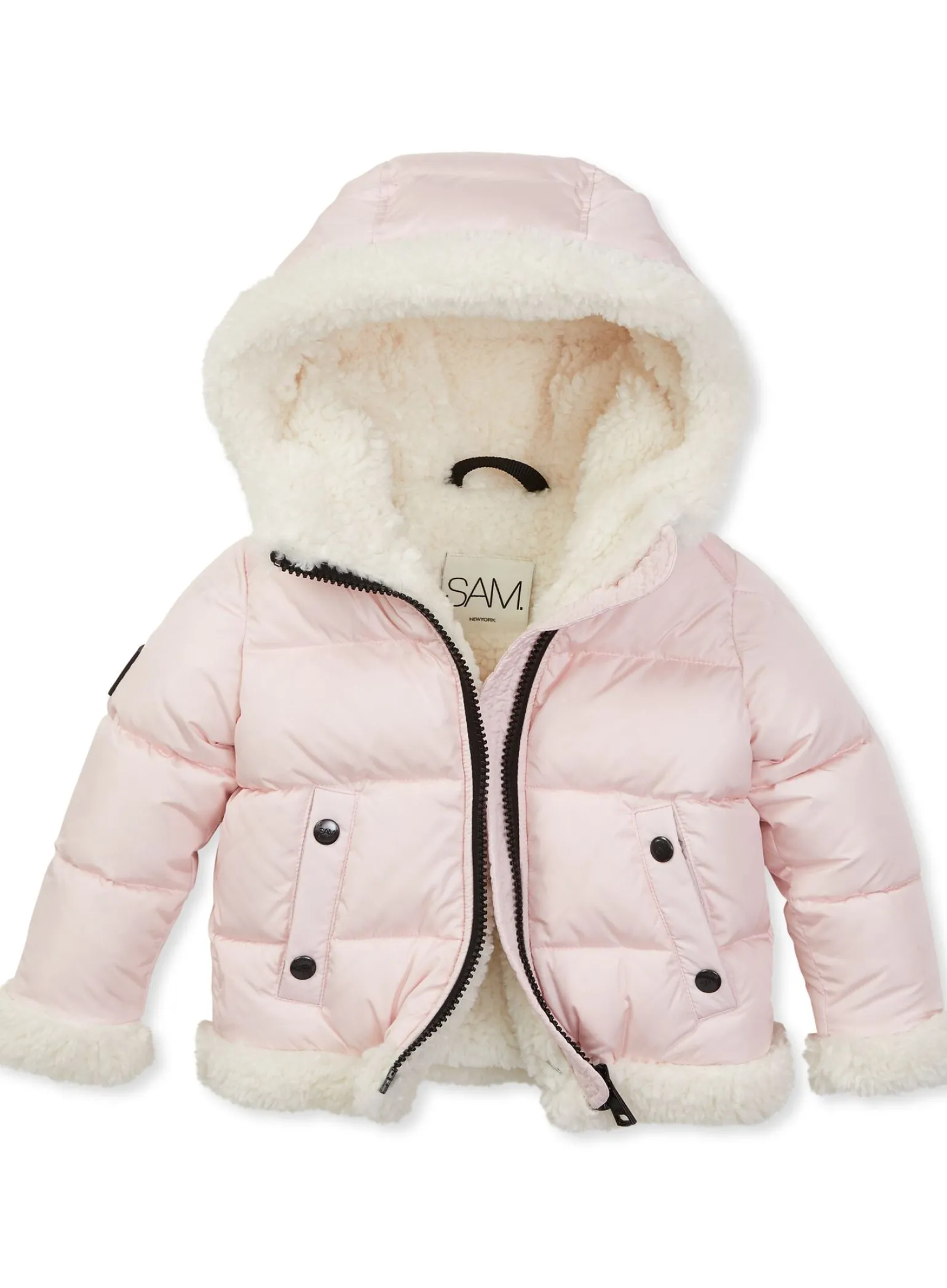 This Cozy, Down Bubble Jacket Is Crafted From A Nylon And Faux Shearling Sherpa Fabric. It Is Lightweight, Yet Protective From Wind And Water, And Filled With Down To Achieve Warmth And An Ultra Soft Feel. The Blizzard Features A Sherpa Lined Hood, Sherpa Trim On The Cuffs And Hem, Center Front Zip Closure, And 2 Snap Welt Pockets.
