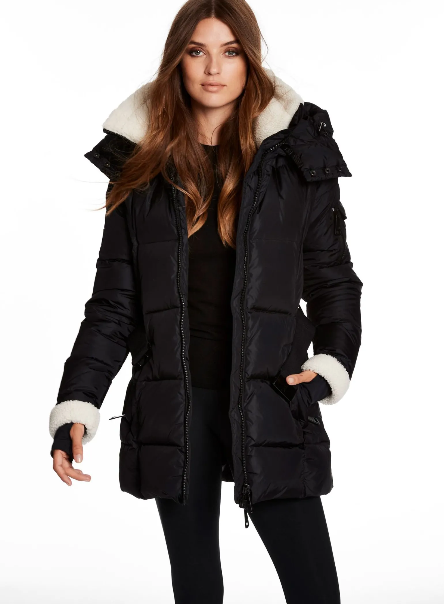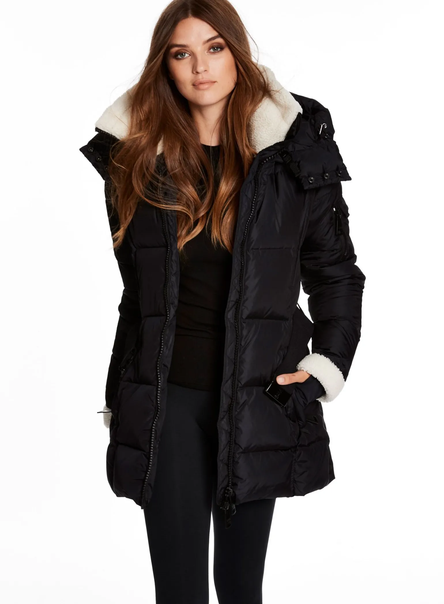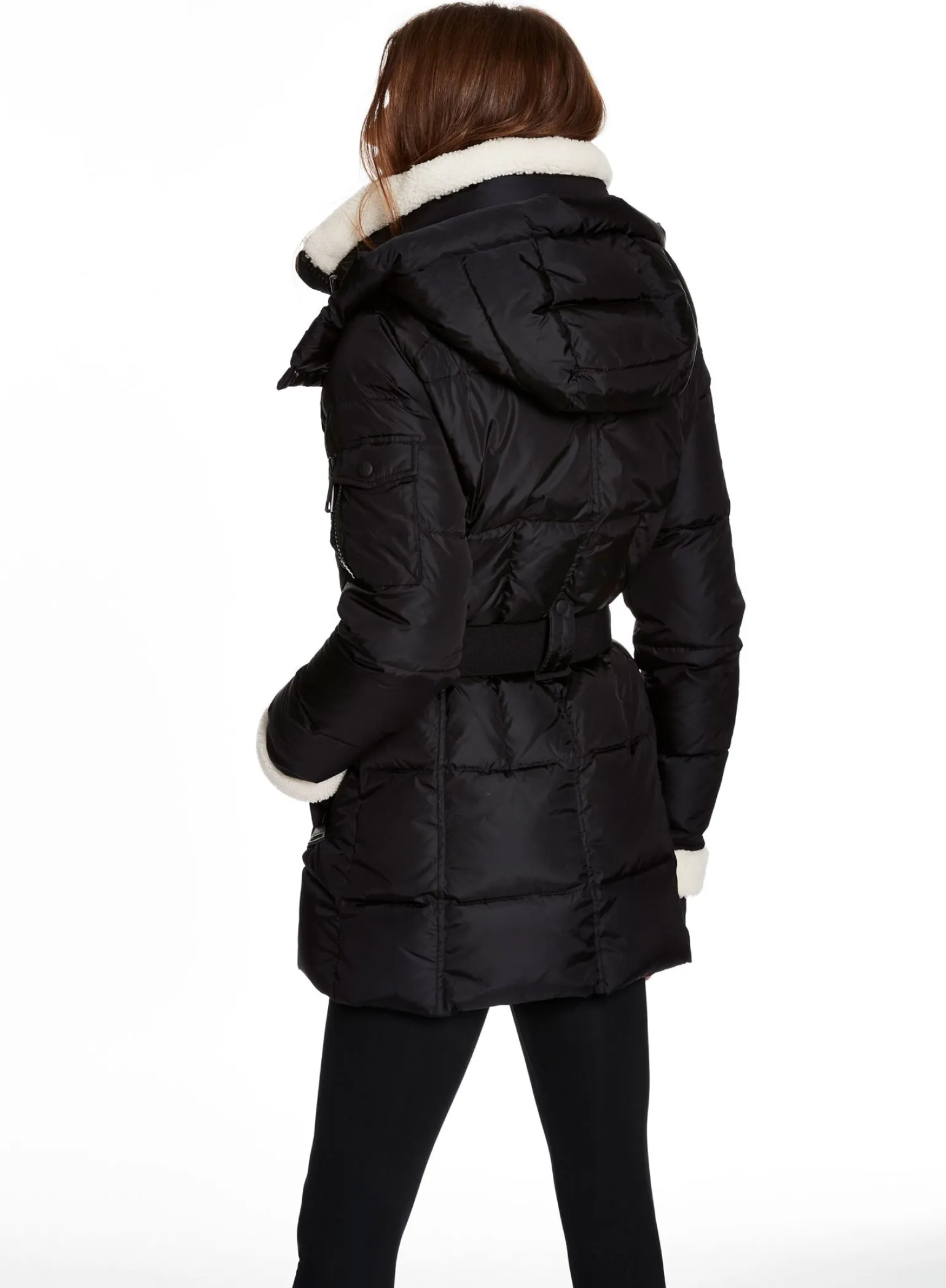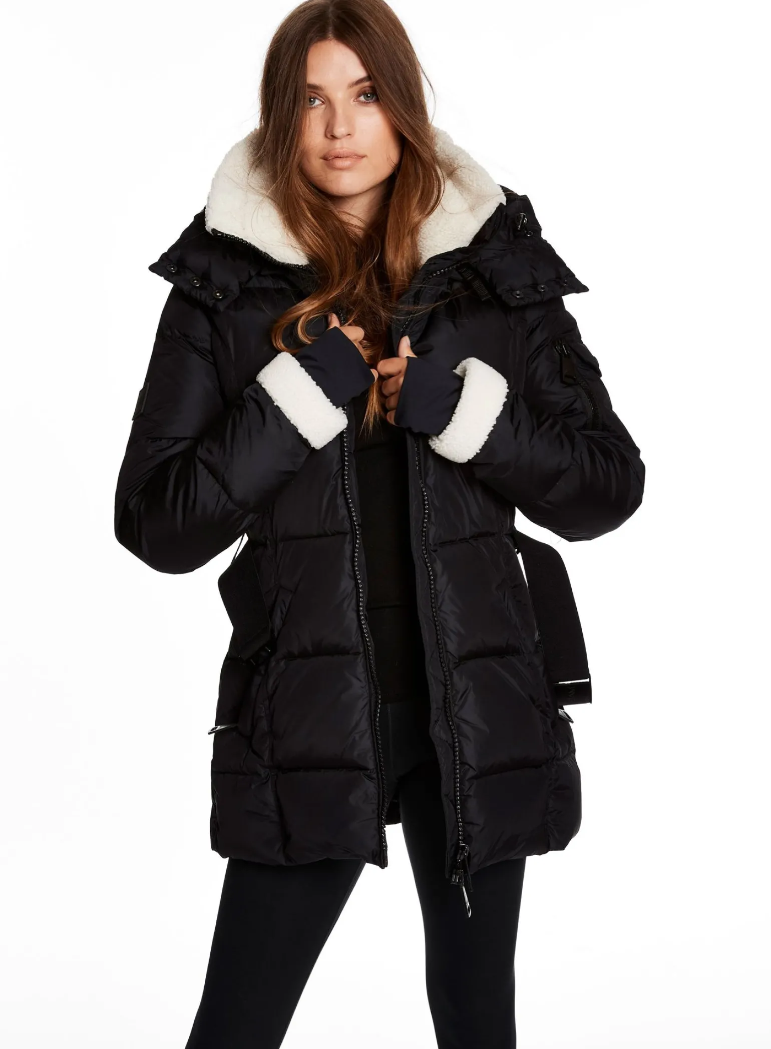 This Mid-Length, Shaped, Down Coat Is Crafted From A Densely Woven Matte Nylon Yarn, And Filled With Down To Achieve Warmth And An Ultra Soft Feel. It Is Lightweight, Wind Resistant, And Water Repellent. The Courtney Features Shearling Trimmed Spandex Wrist Cuffs With Thumbholes, A Shearling Collar, A Detachable Zip-Off Hood, A Detachable Belt With Sam Logo Embossed Metal Buckle, 2 Lower Zip Pockets, And Sleeve Pocket Detail.