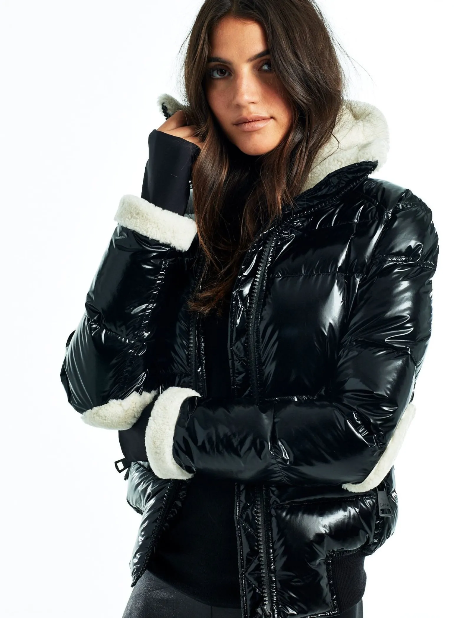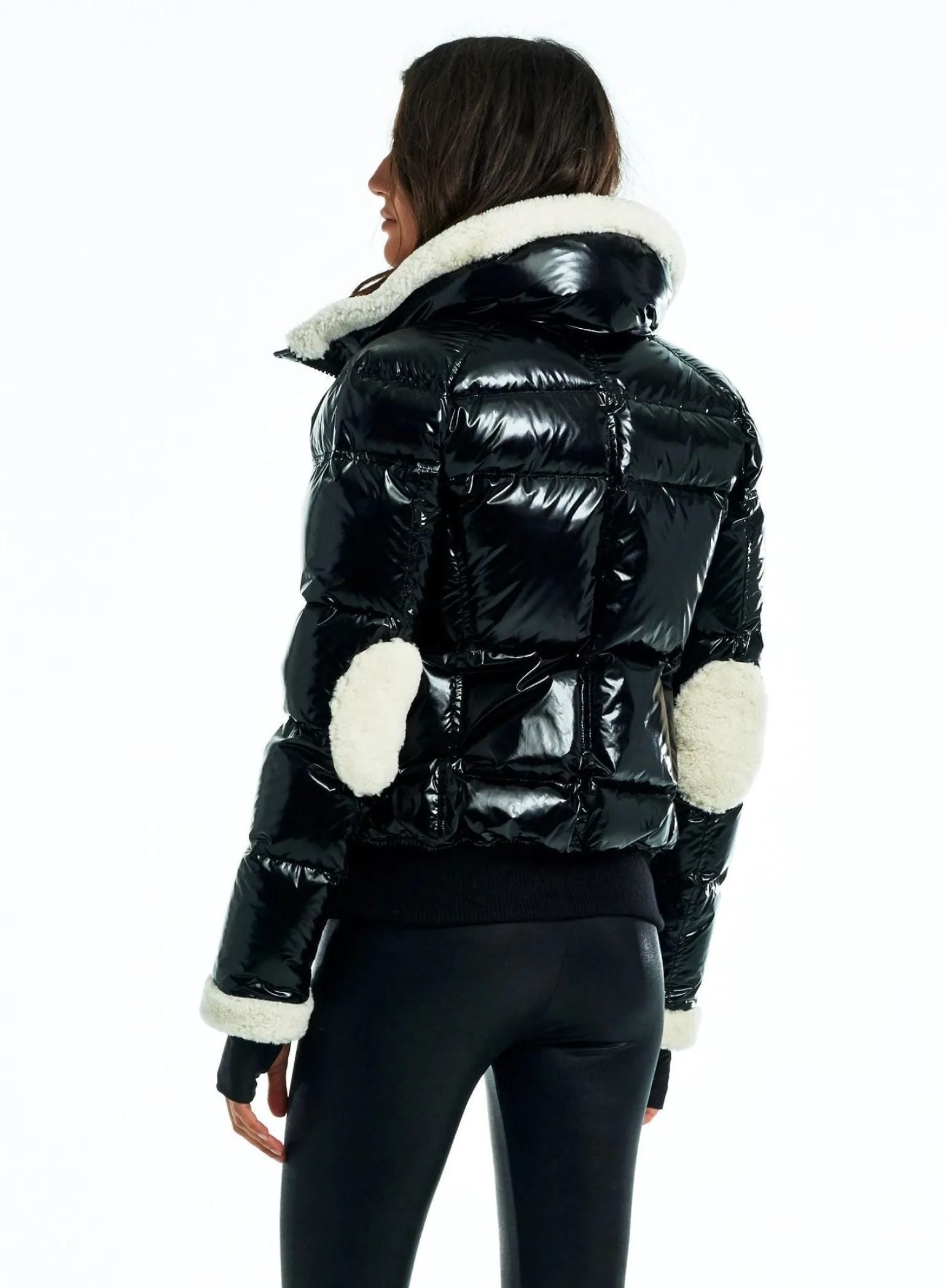 This Quilted, Bomber Style Jacket Is Crafted From A Densely Woven Nylon, And Filled With Down To Achieve Warmth And An Ultra Soft Feel. The Ellie Is Wind Resistant, Water Repellent, And Features A Stand Shearling Collar, Shearling Elbow Patches, Center Front Zip Closure, Spandex Thumbhole Cuffs, 2 Lower Zip Pockets, Snap Sleeve And Pocket Detail, And A Knit Waistband.