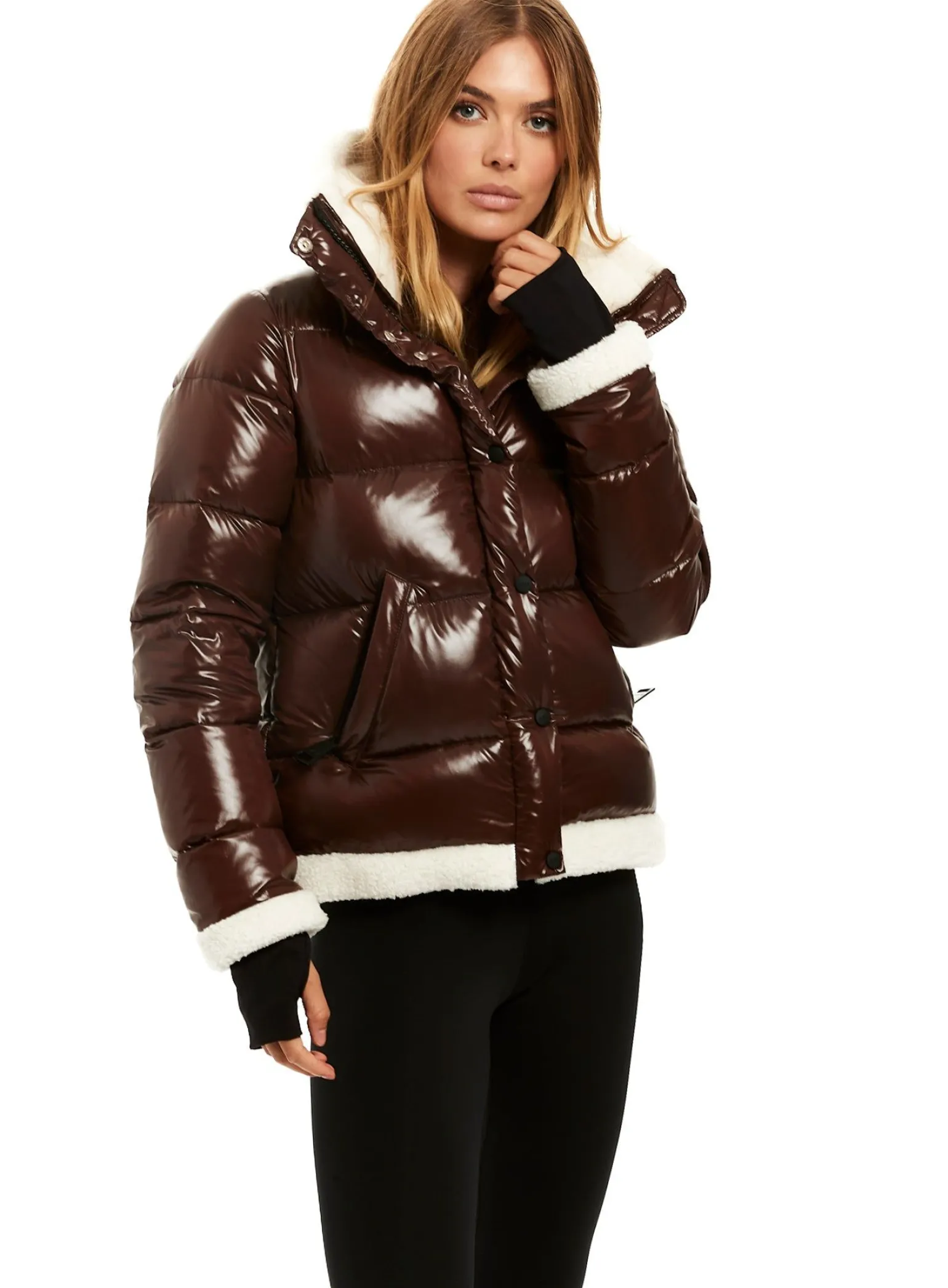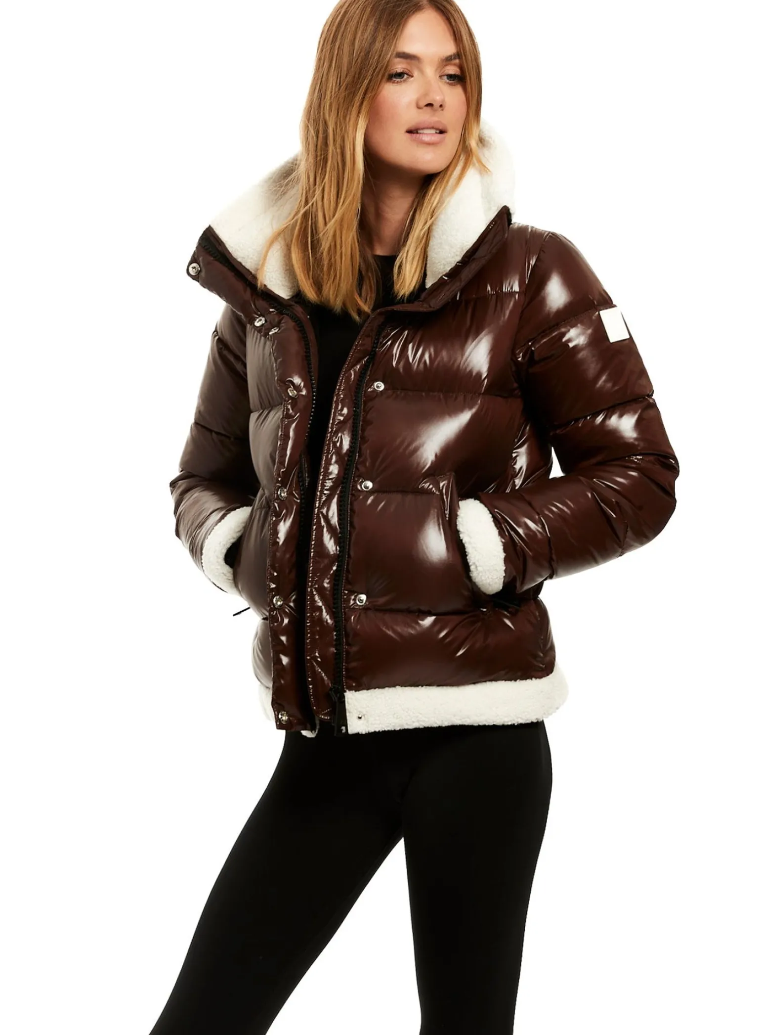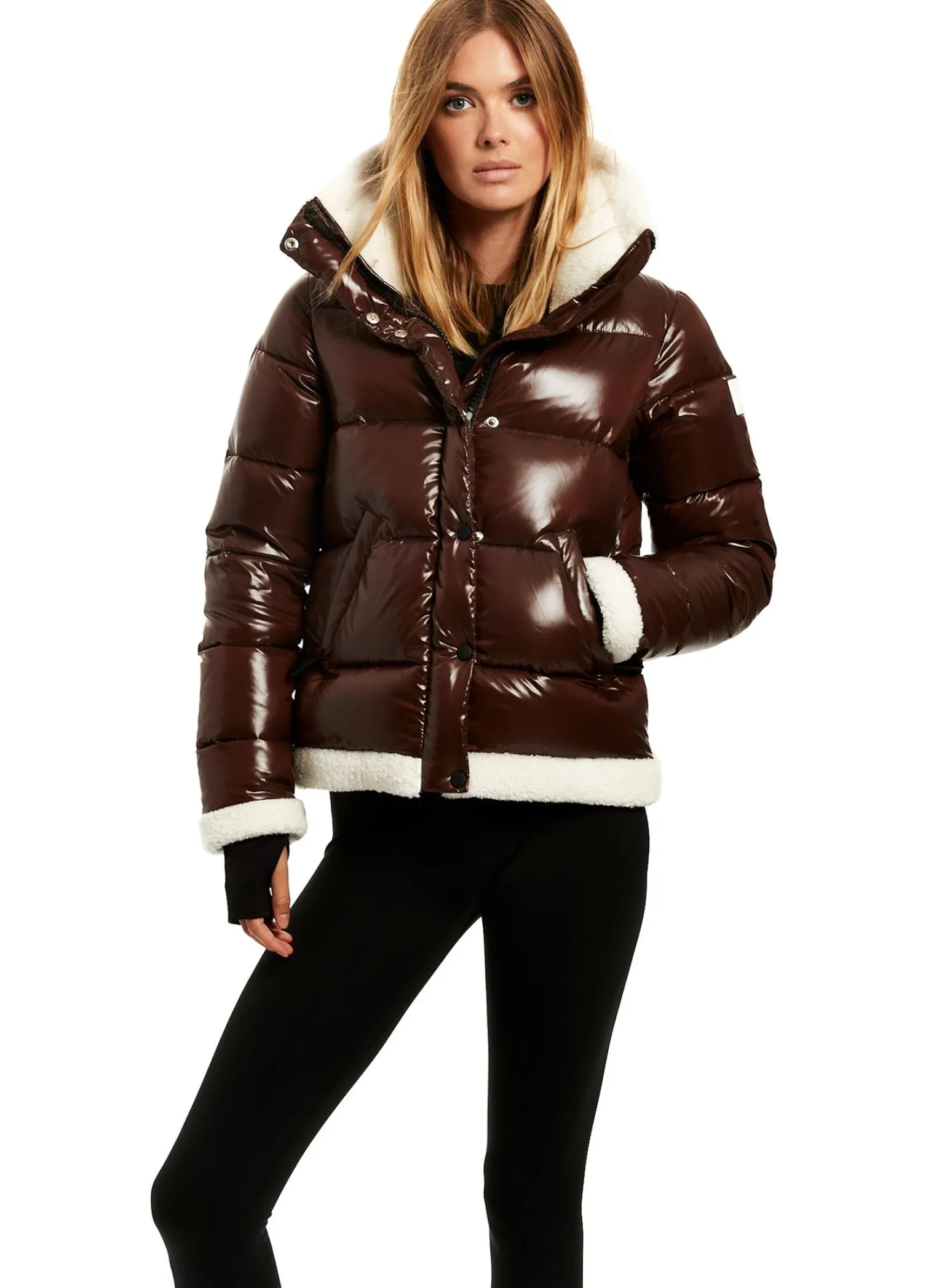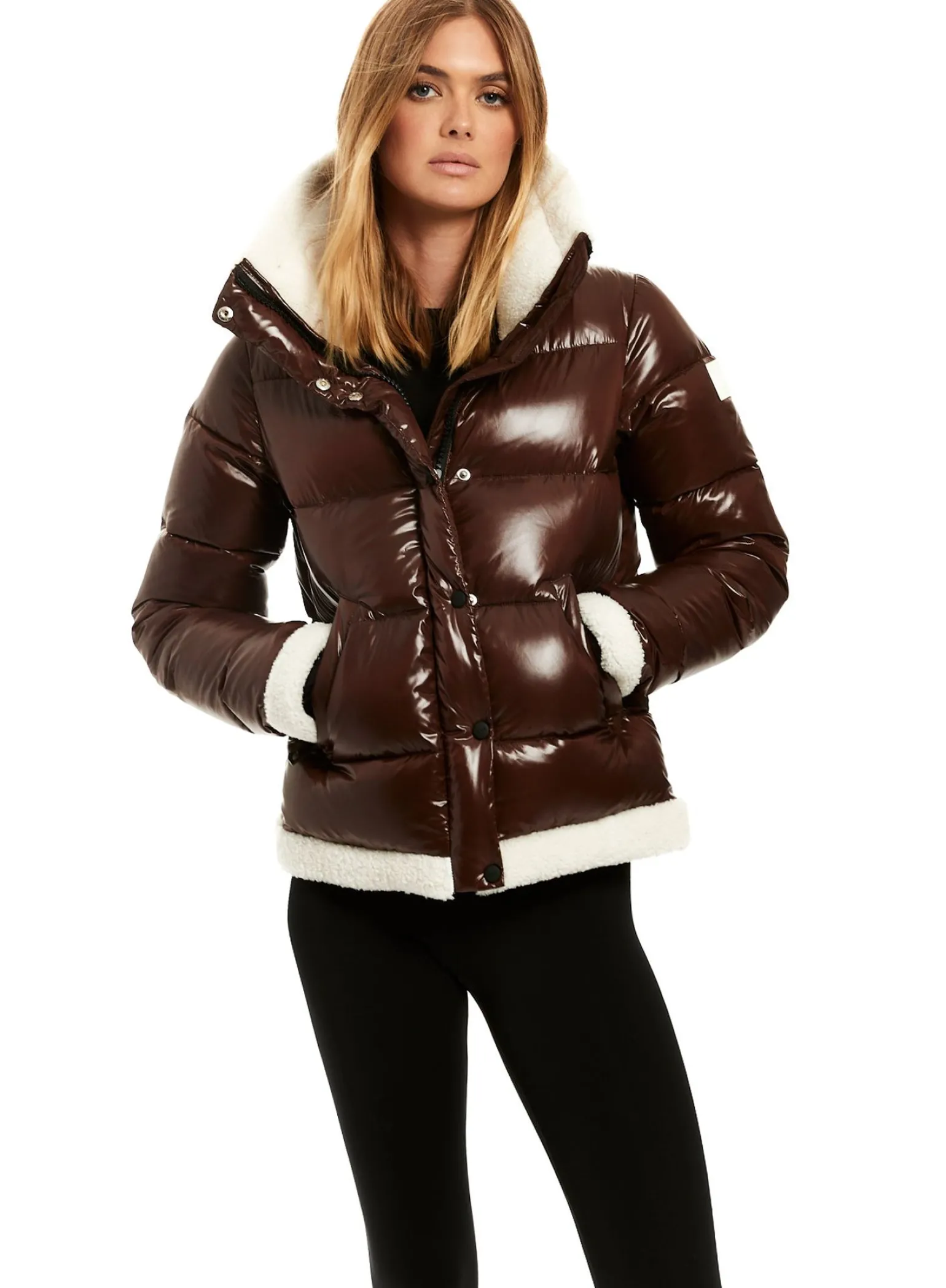 This Quilted, Down Puffer Jacket Is Crafted From A Densely Woven Nylon, And Filled With Down To Achieve Warmth And An Ultra Soft Feel. The Gigi Is Wind Resistant, Water Repellent, And Features A Shearling Stand Collar, Shearling Trim On The Cuffs And Hem, White Logo Patch On The Arm, Spandex Wrist Cuffs With Thumbholes, A Center Front Zip And Snap Placket Closure, And Lower Zip Pockets.