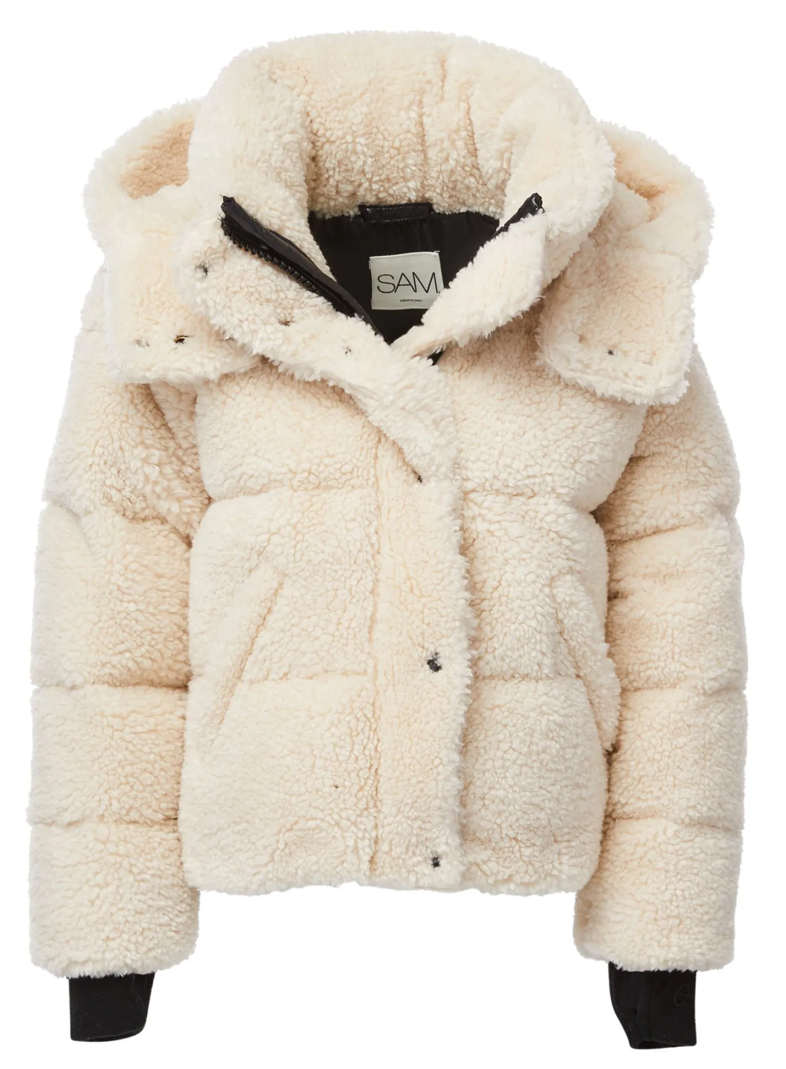 This Quilted, Down Puffer Jacket Is Crafted From A Cozy Faux Shearling Sherpa Fabric. It Is Lightweight, Yet Protective From Wind And Water, And Filled With Down To Achieve Warmth And An Ultra Soft Feel. The Olivia Features Both A Stand Collar And Detachable Hood, Fleece Wrist Cuffs With Thumbholes, A Center Front Zip And Snap Placket Closure, And Lower Zip Pockets.