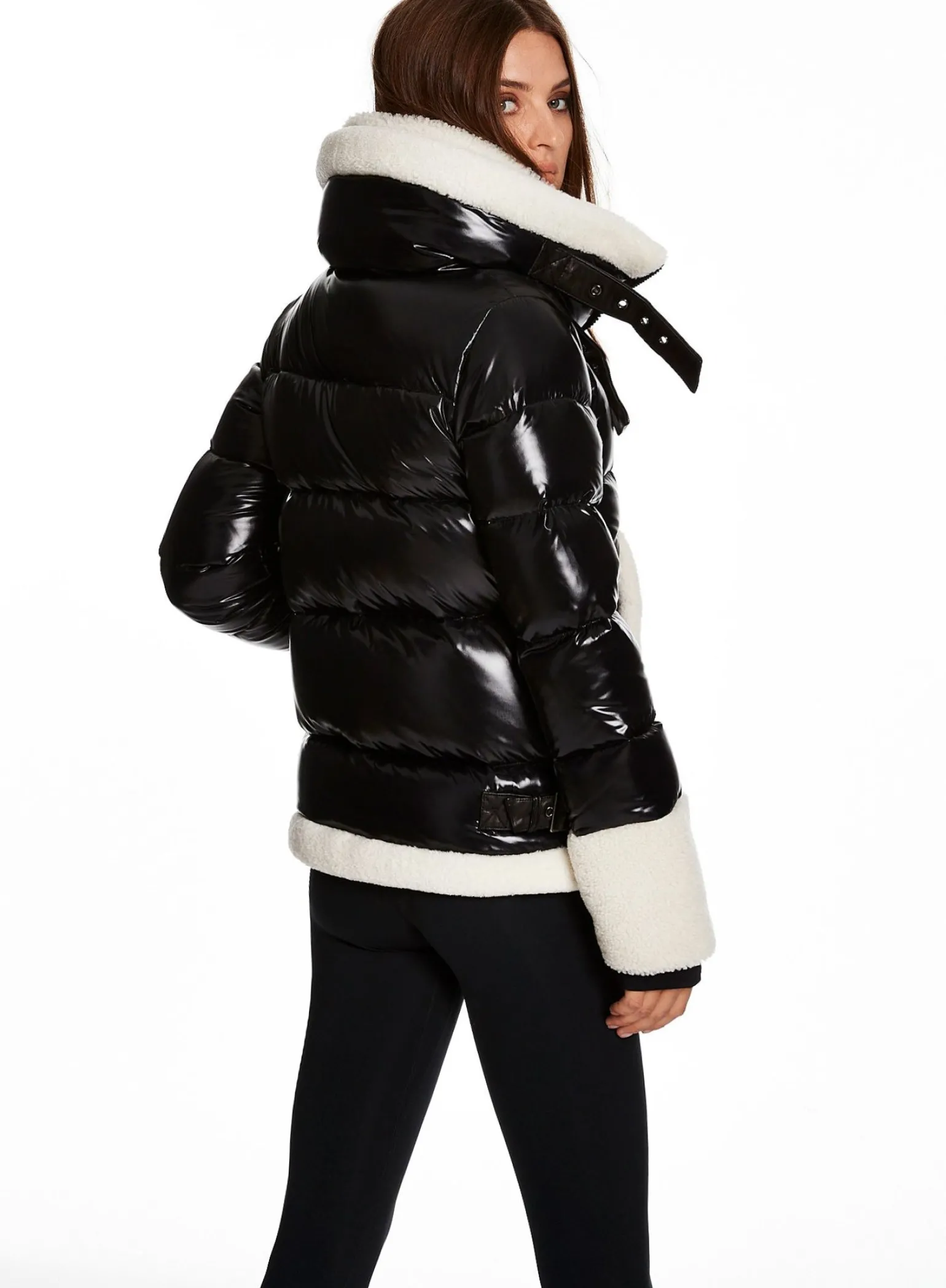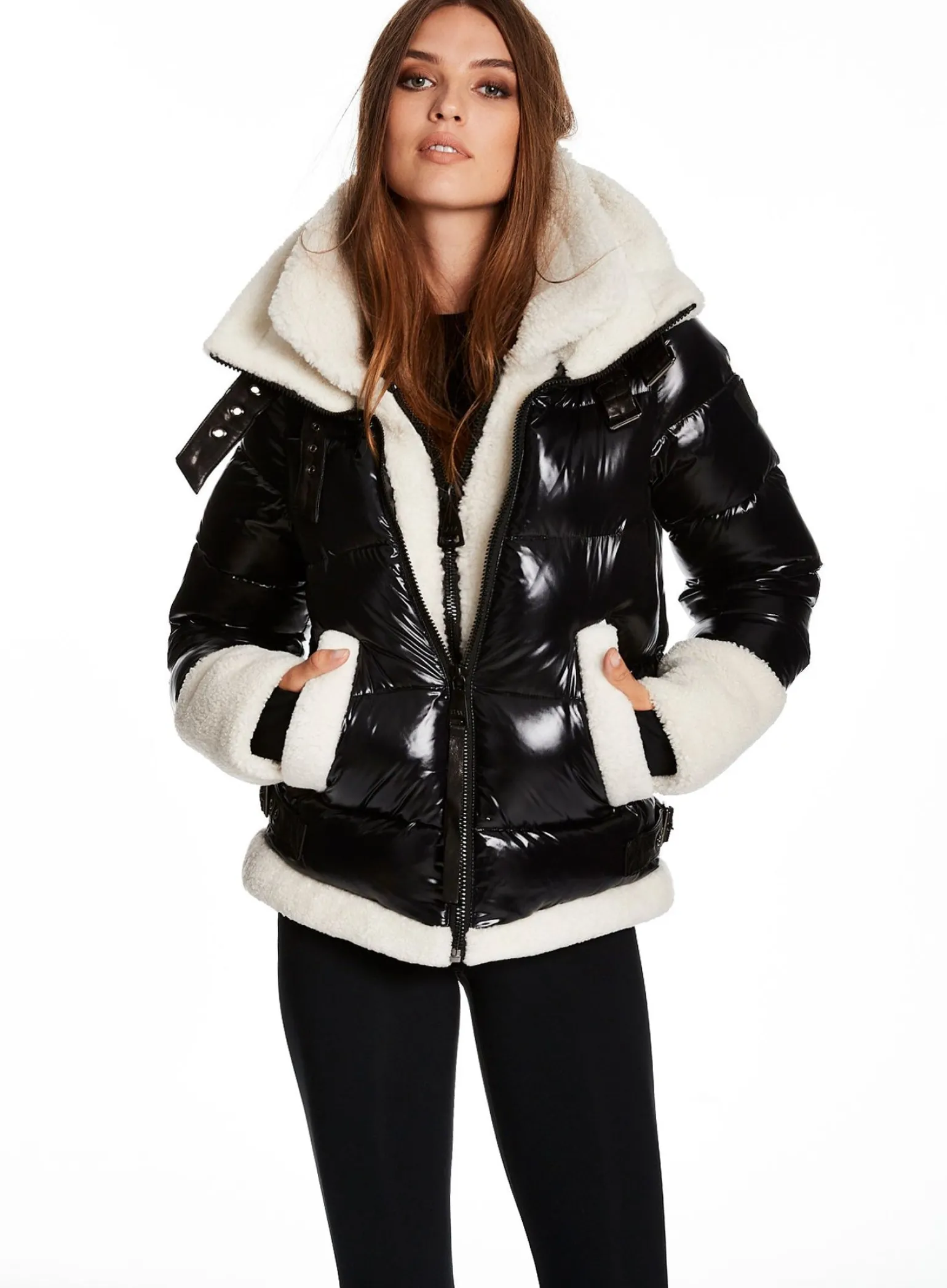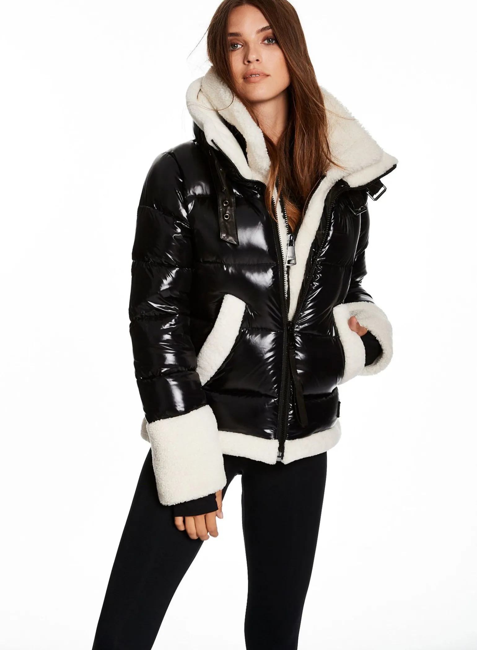 This Puffer Jacket Is Crafted From A Densely Woven Nylon Yarn, And Filled With Duck Down To Achieve Warmth And An Ultra Soft Feel. It Is Lightweight, Wind Resistant, And Water-Repellent. The Heidi Features A Shearling Stand Collar And Attached Shearling Bib, Shearling Trim On The Cuffs And Hem, Spandex Wrist Cuffs With Thumbholes, Center Front Zip, And Lower Zip Pockets.