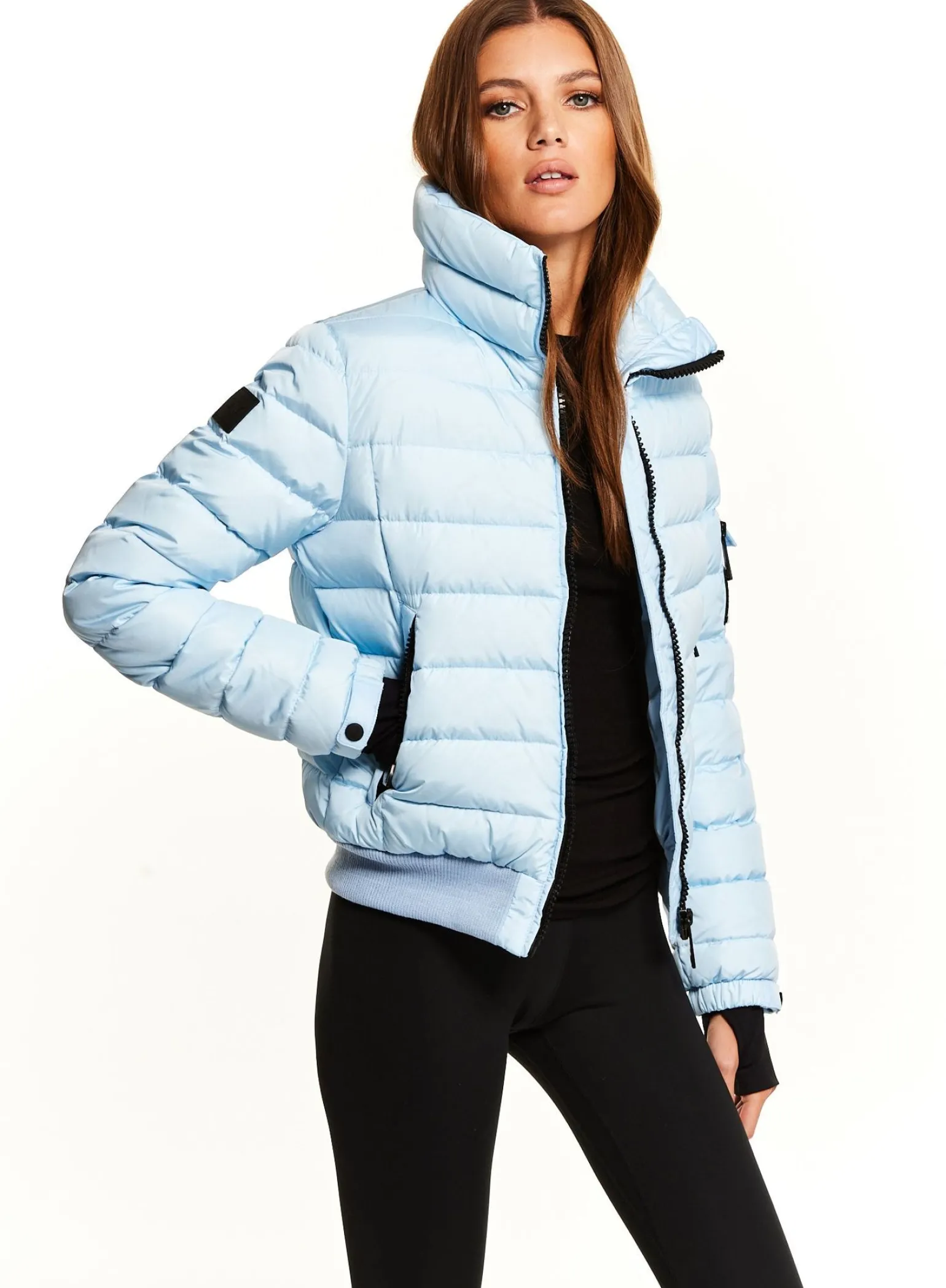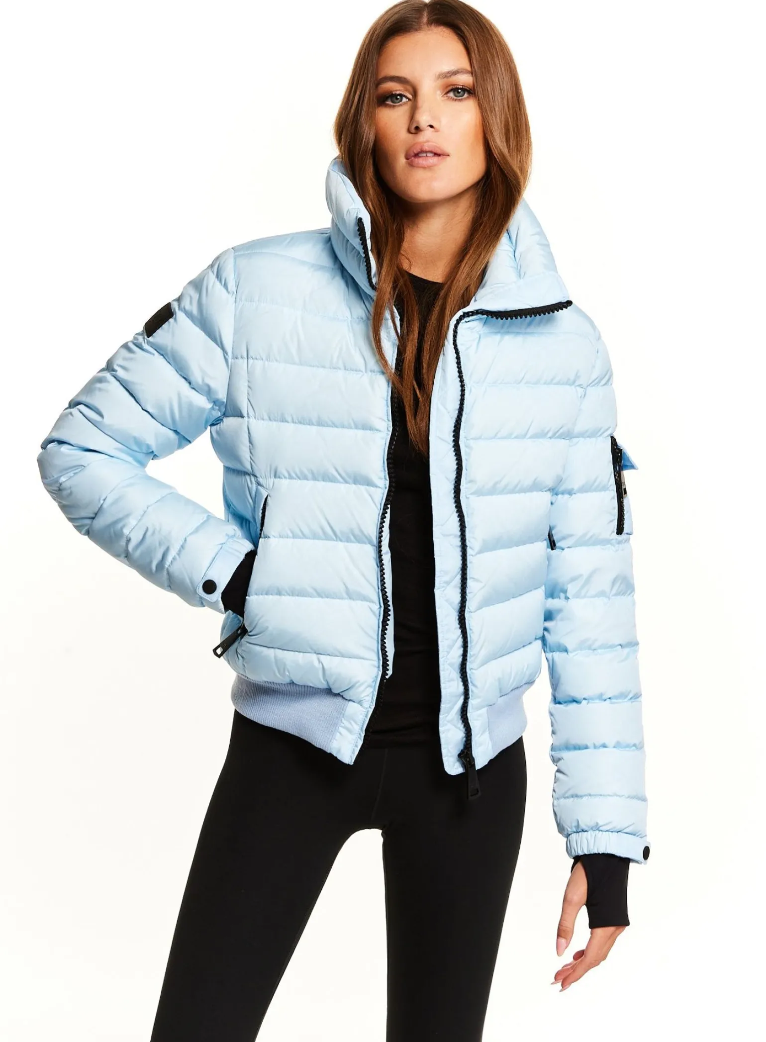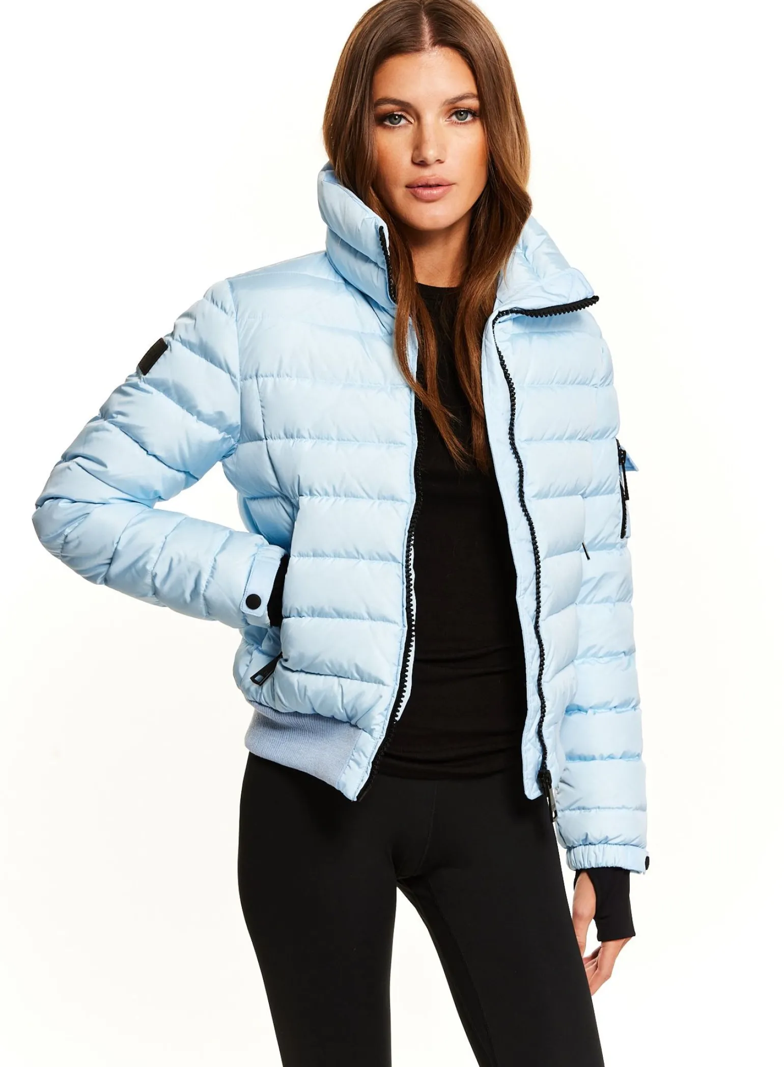 This Quilted, Bomber Style, Down Jacket Is Crafted From A Densely Woven Nylon, And Filled With Down To Achieve Warmth And An Ultra Soft Feel. The Luna Is Lightweight, Wind Resistant, And Water Repellent, Making It Perfect For Year-Round Wear And Function. It Features A Stand Collar, Center Front Zip Closure, 3 Stripes Across The Chest, Arms, And Back, Spandex Thumbhole Cuffs, 2 Lower Zip Pockets, Snap Sleeve And Pocket Detail, And A Knit Waistband.