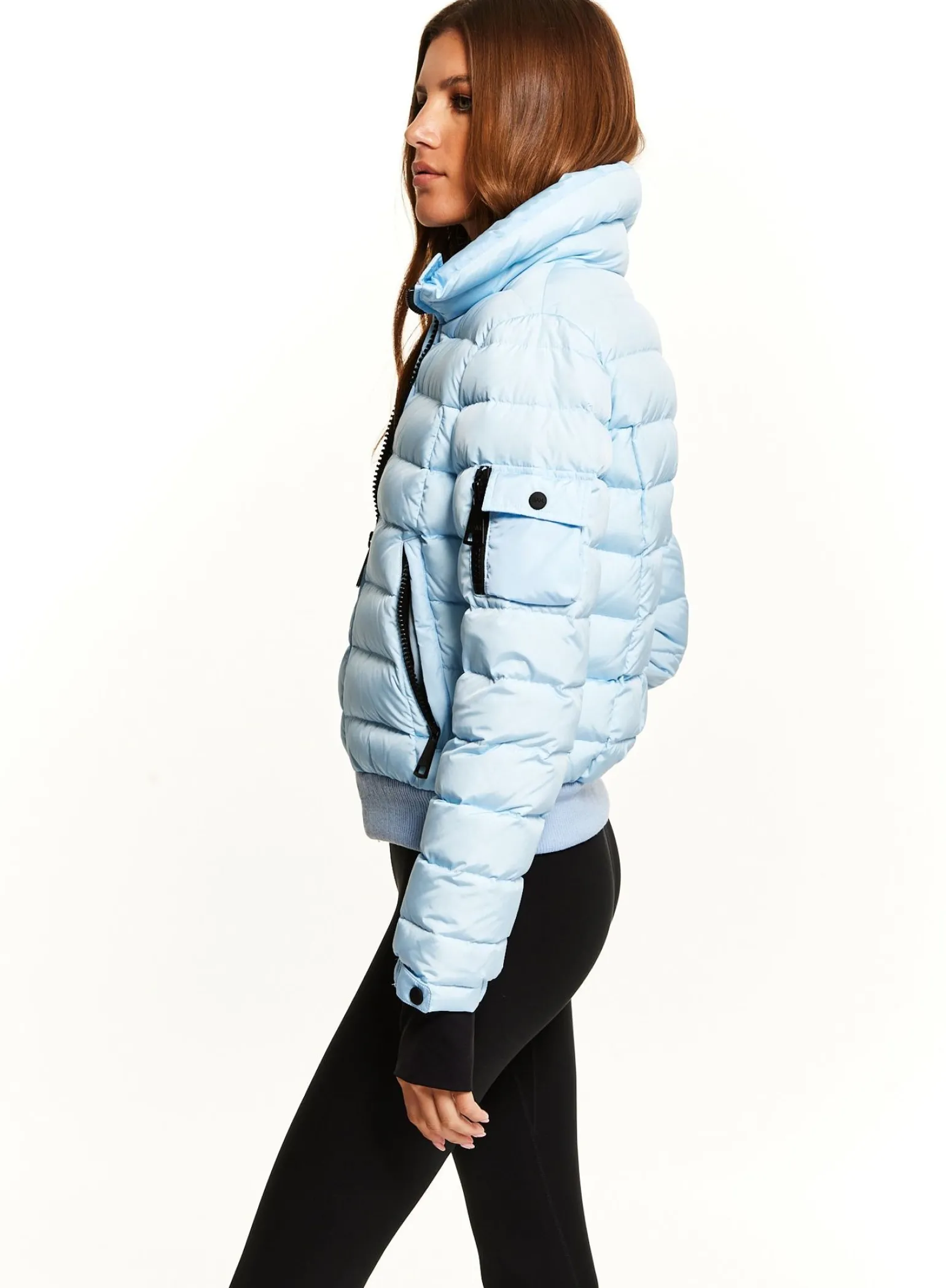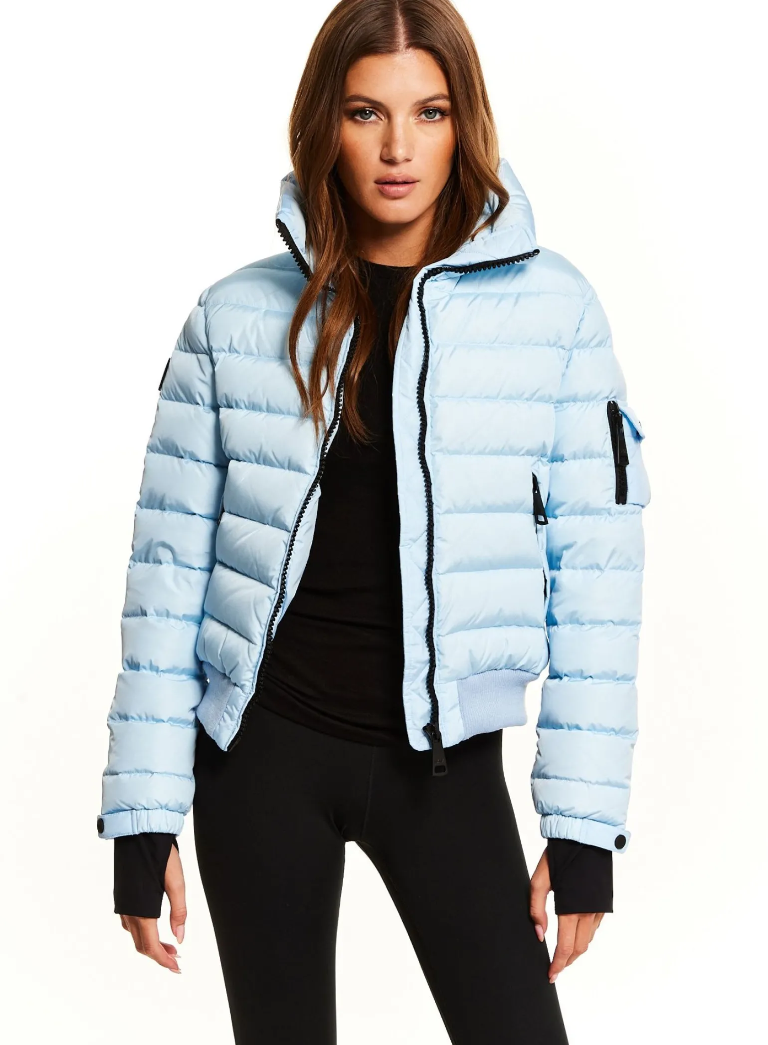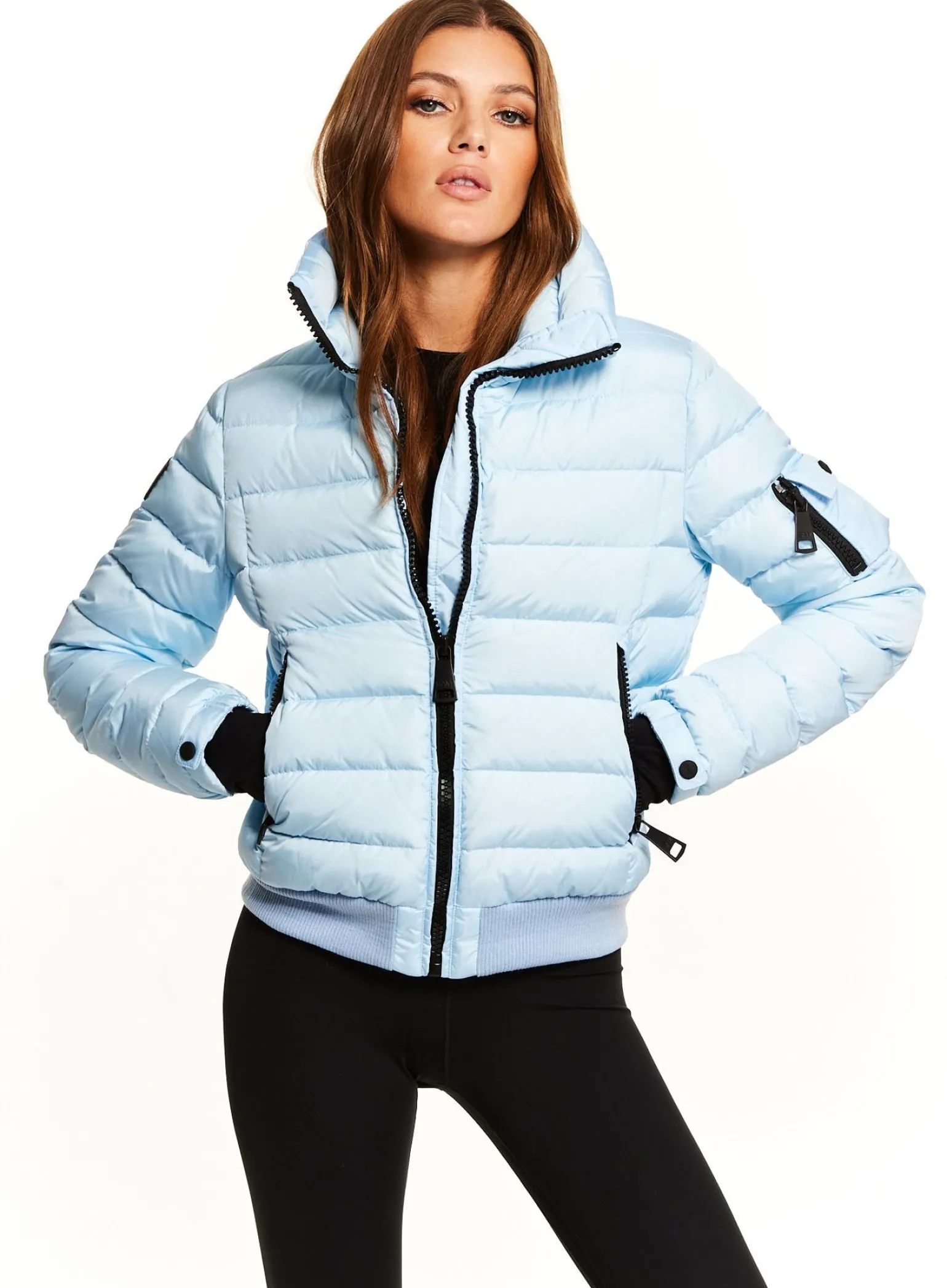 This Quilted, Bomber Style, Down Jacket Is Crafted From A Densely Woven Nylon, And Filled With Down To Achieve Warmth And An Ultra Soft Feel. The Luna Is Lightweight, Wind Resistant, And Water Repellent, Making It Perfect For Year-Round Wear And Function. It Features A Stand Collar, Center Front Zip Closure, 3 Stripes Across The Chest, Arms, And Back, Spandex Thumbhole Cuffs, 2 Lower Zip Pockets, Snap Sleeve And Pocket Detail, And A Knit Waistband.