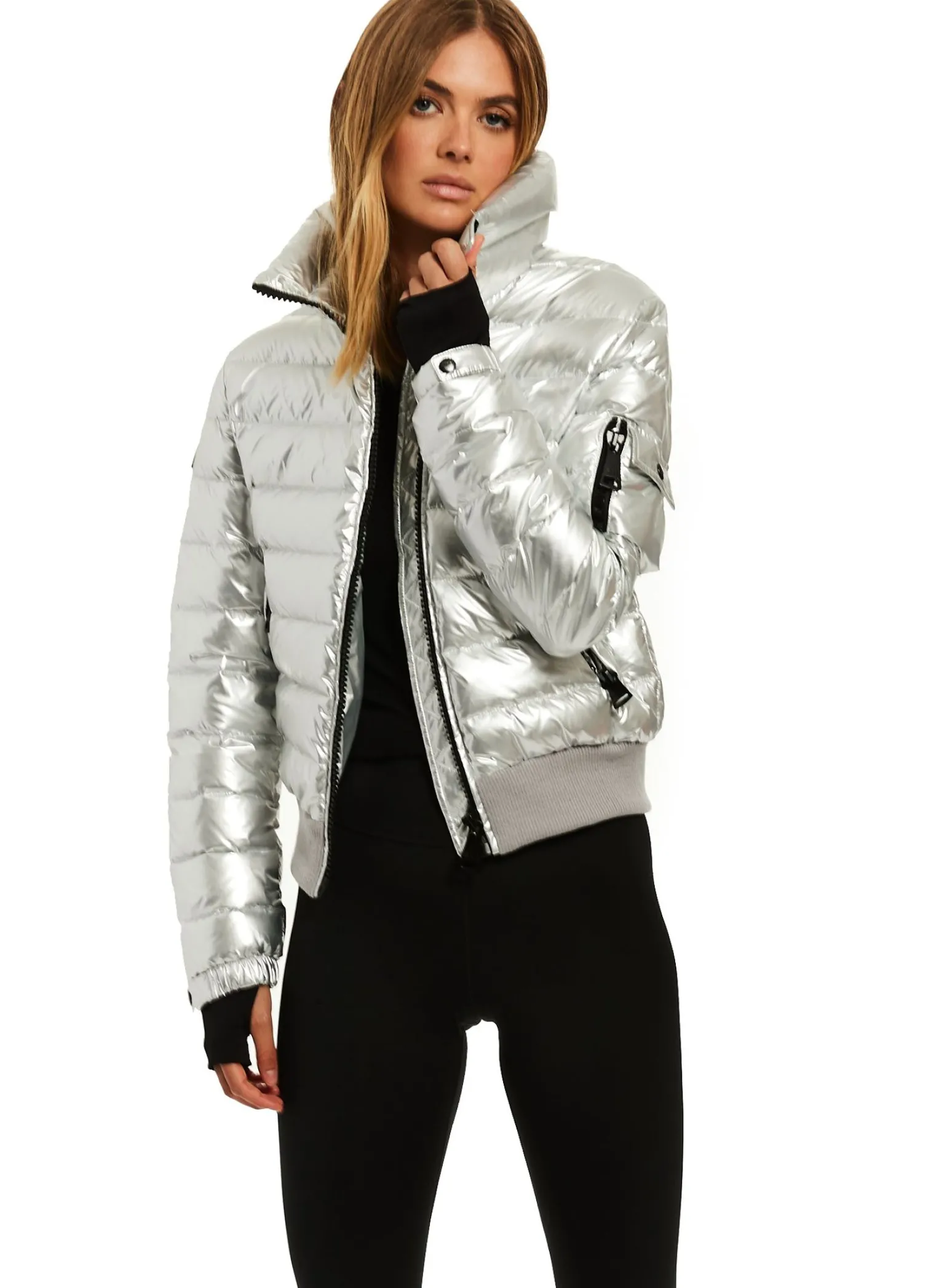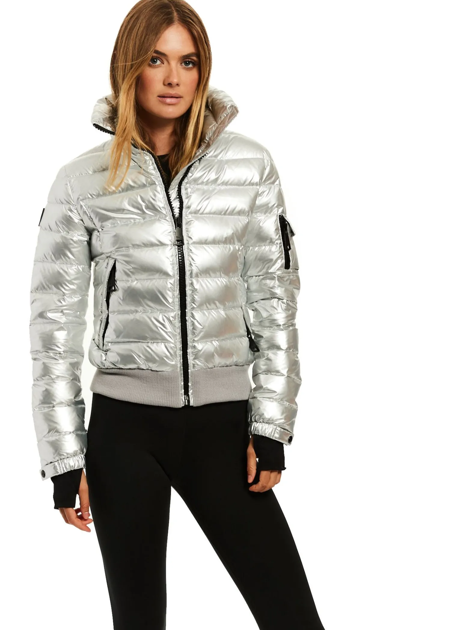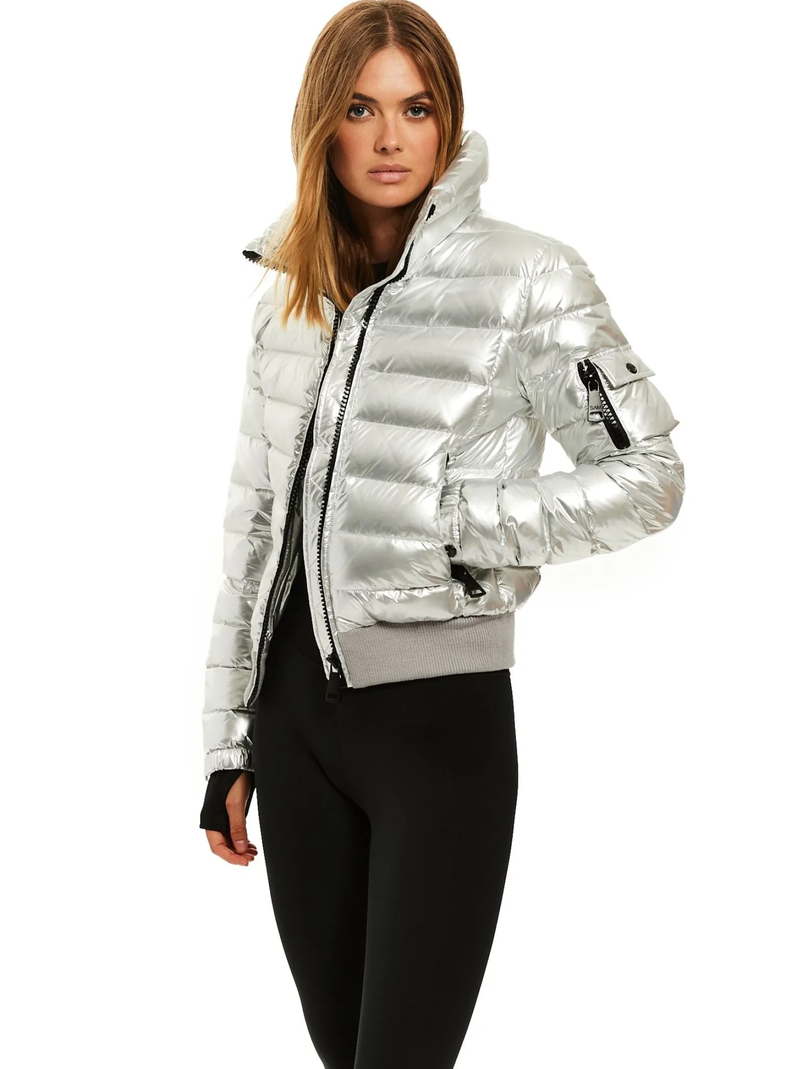 This Quilted, Bomber Style, Down Jacket Is Crafted From A Densely Woven Nylon, And Filled With Fine White Duck Down To Achieve Warmth And An Ultra Soft Feel. The Luna Is Lightweight, Wind Resistant, And Water Repellent, Making It Perfect For Year-Round Wear And Function. It Features A Stand Collar, Center Front Zip Closure, 3 Stripes Across The Chest, Arms, And Back, Spandex Thumbhole Cuffs, 2 Lower Zip Pockets, Snap Sleeve And Pocket Detail, And A Knit Waistband.
