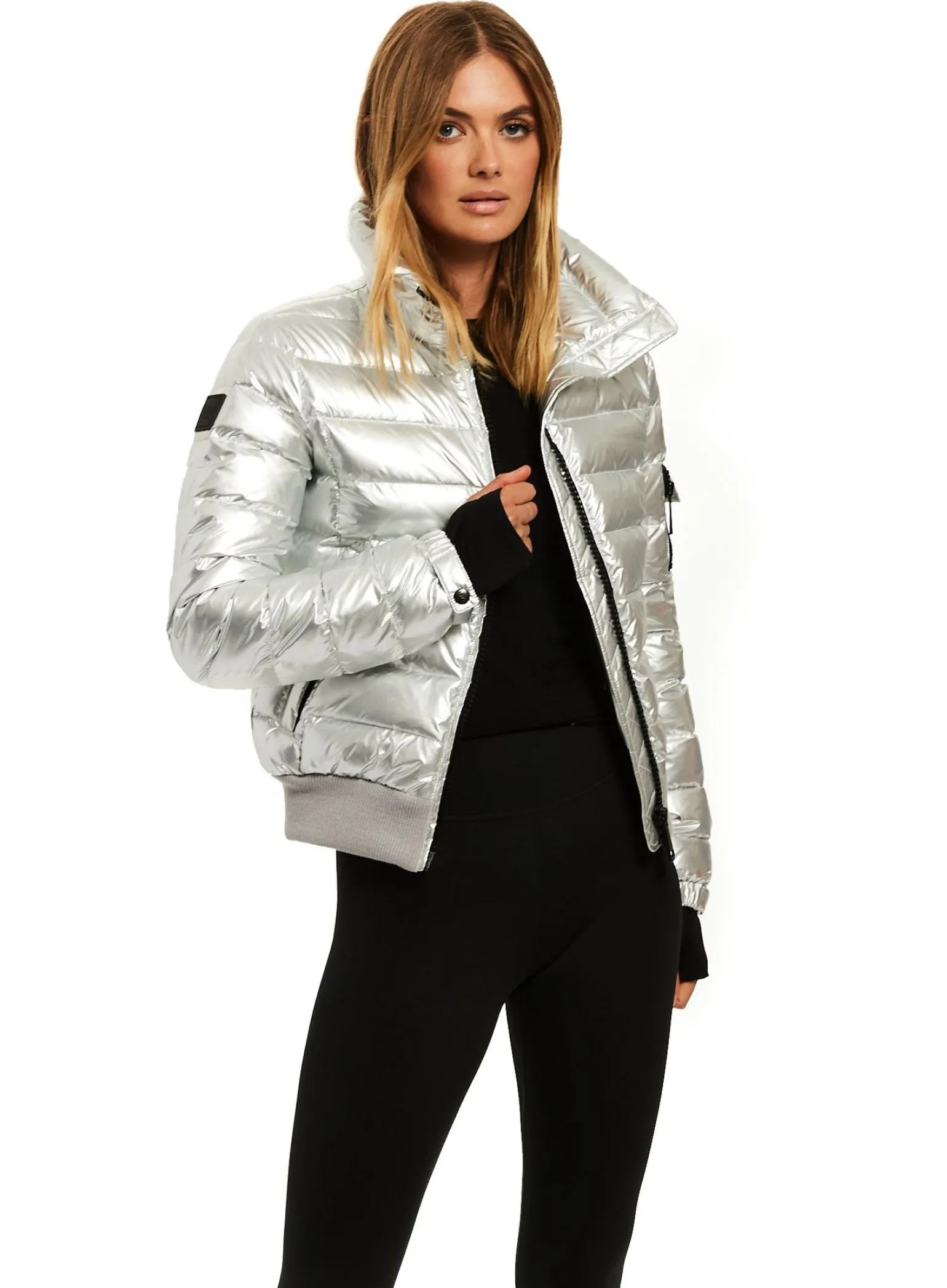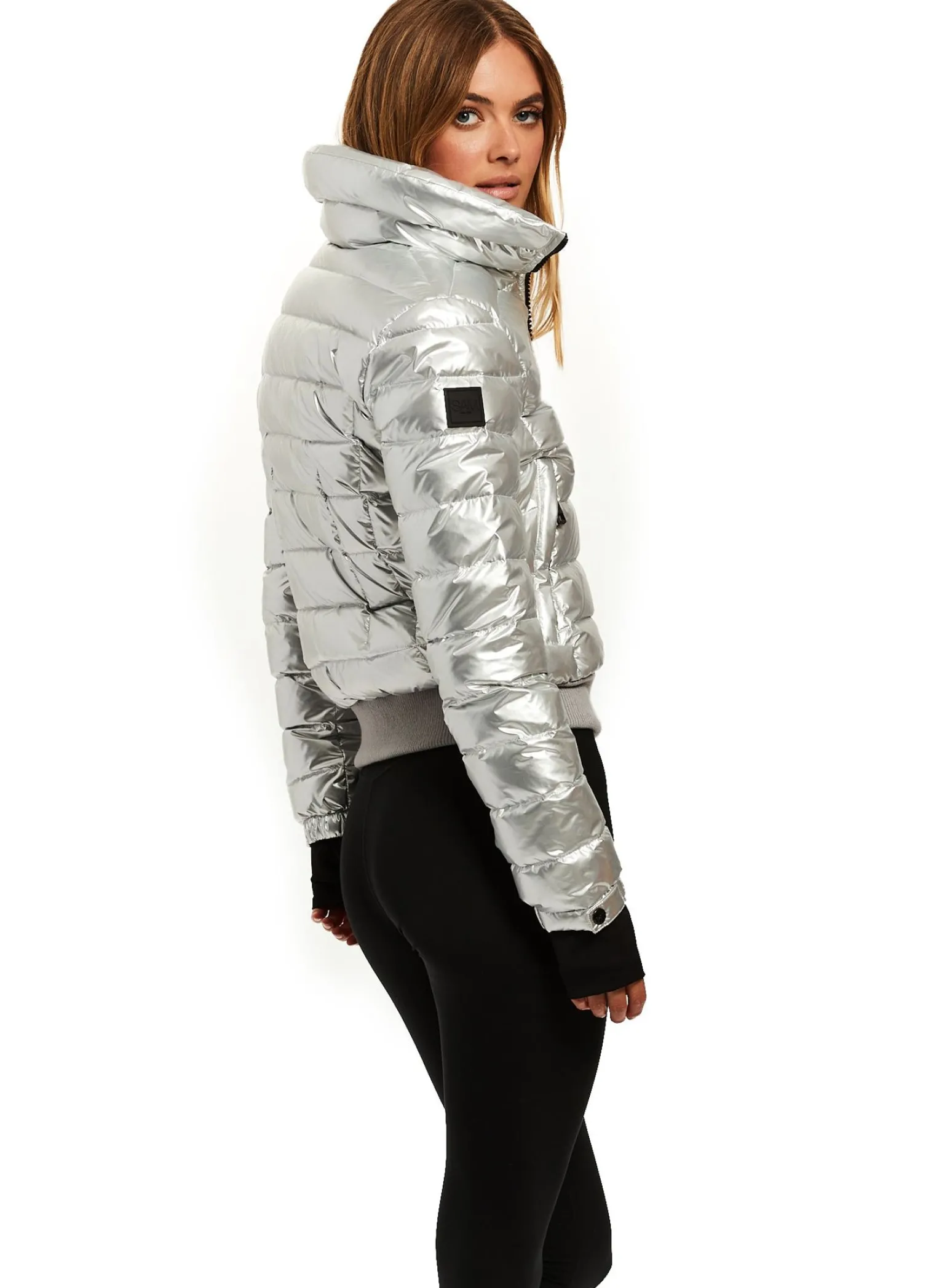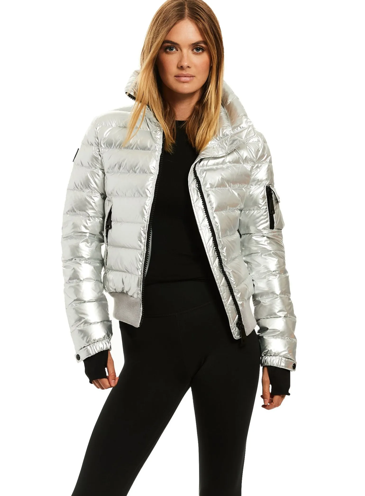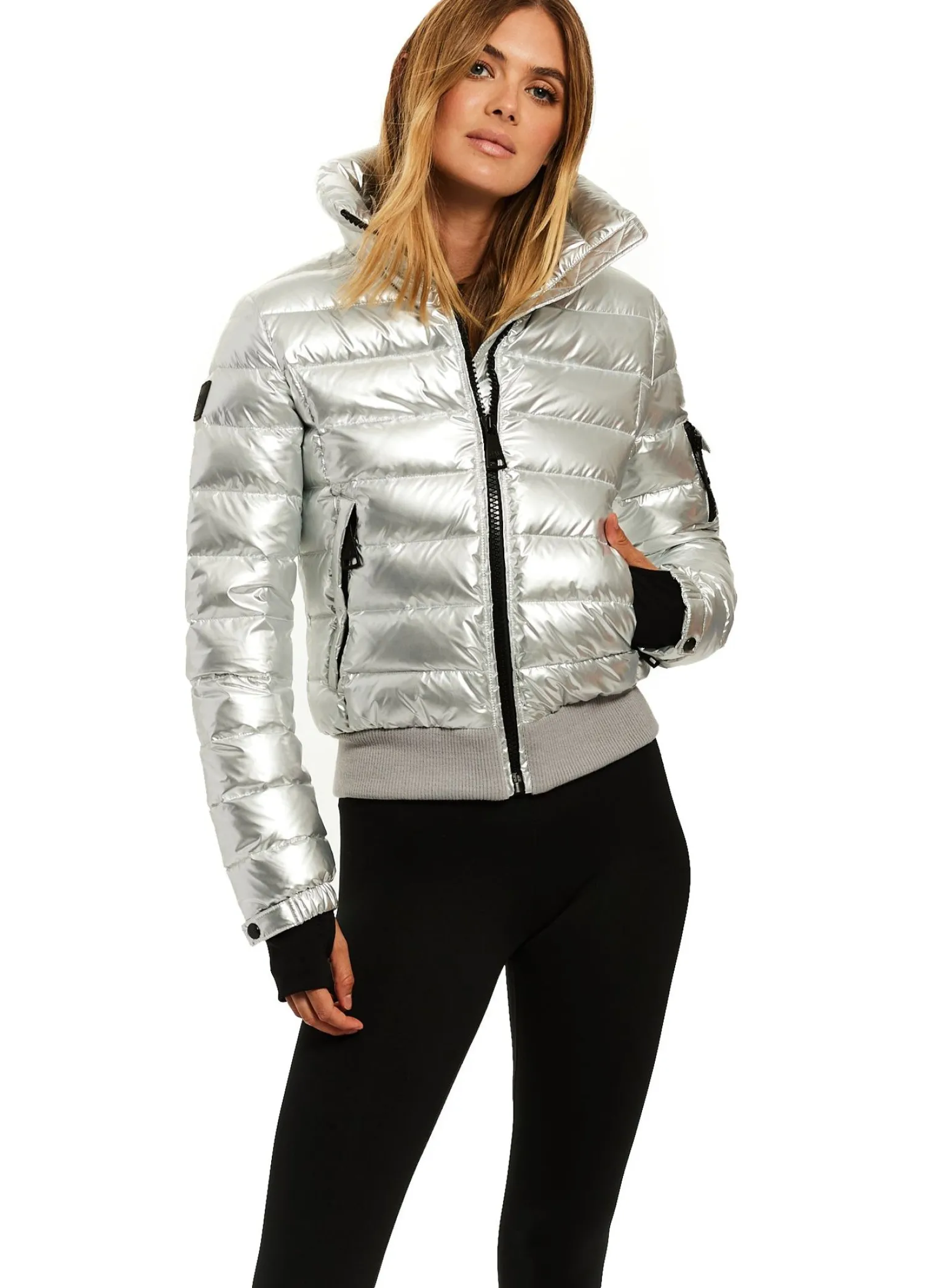 This Quilted, Bomber Style, Down Jacket Is Crafted From A Densely Woven Nylon, And Filled With Fine White Duck Down To Achieve Warmth And An Ultra Soft Feel. The Luna Is Lightweight, Wind Resistant, And Water Repellent, Making It Perfect For Year-Round Wear And Function. It Features A Stand Collar, Center Front Zip Closure, 3 Stripes Across The Chest, Arms, And Back, Spandex Thumbhole Cuffs, 2 Lower Zip Pockets, Snap Sleeve And Pocket Detail, And A Knit Waistband.