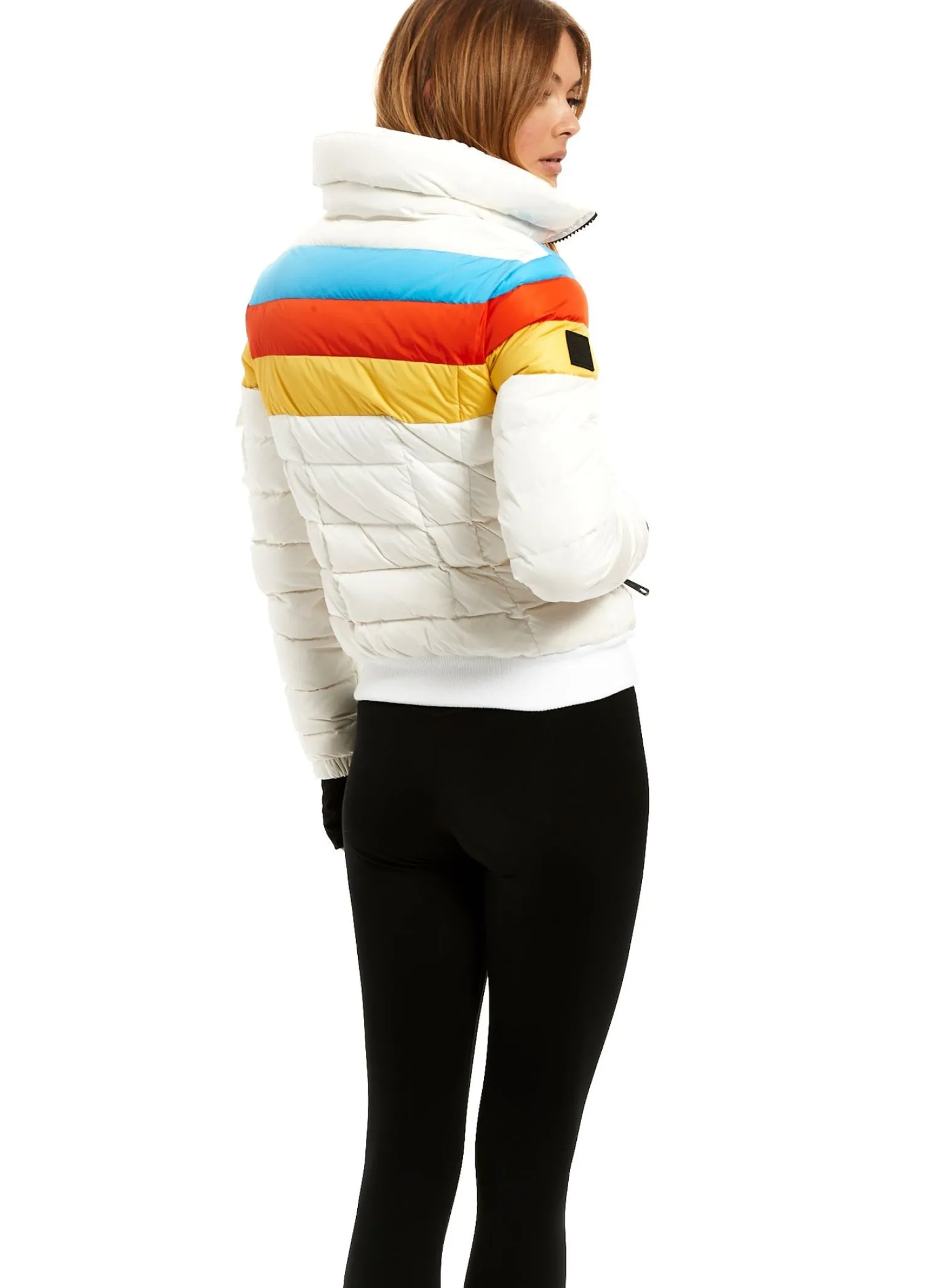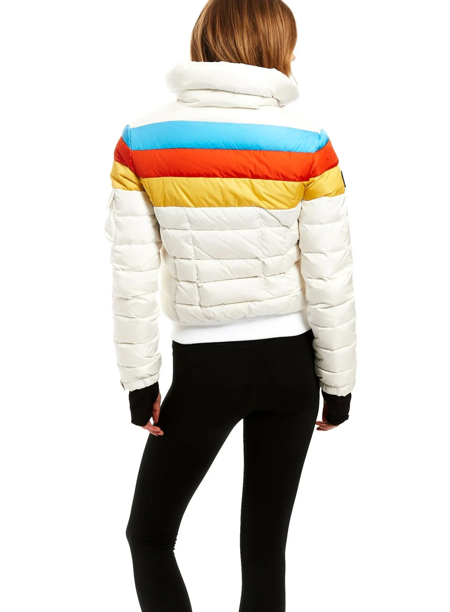 This Quilted, Bomber Style, Puffer Jacket Is Crafted From A Densely Woven Matte Nylon, And Filled With Down To Achieve Warmth And An Ultra Soft Feel. The Starburst Is Lightweight, Wind Resistant, And Water Repellent, Making It Perfect For Year-Round Wear And Function. It Features A Stand Collar, Center Front Zip Closure, 3 Stripes Across The Chest, Arms, And Back, Spandex Thumbhole Cuffs, 2 Lower Zip Pockets, Snap Sleeve And Pocket Detail, And A Knit Waistband.
