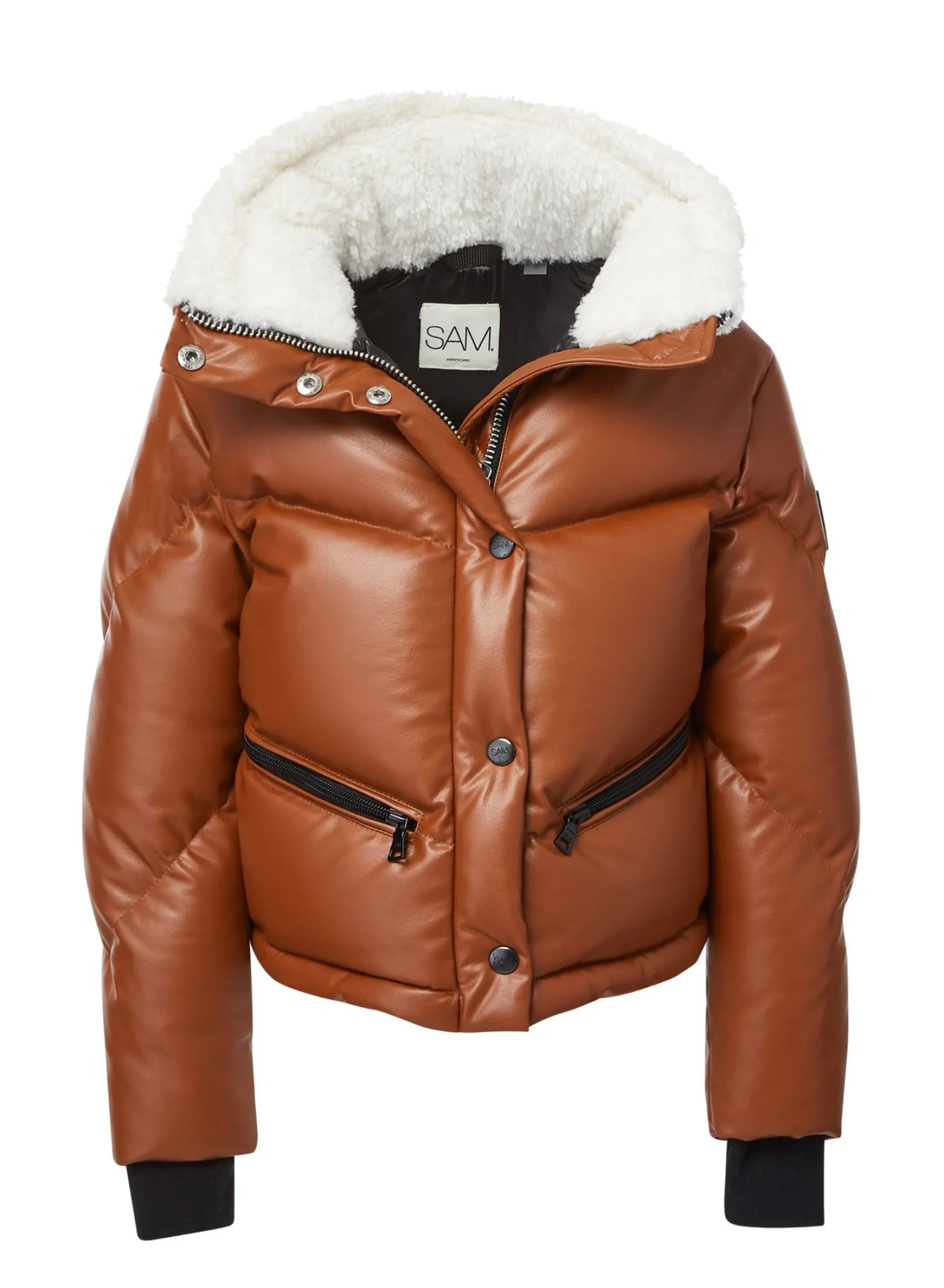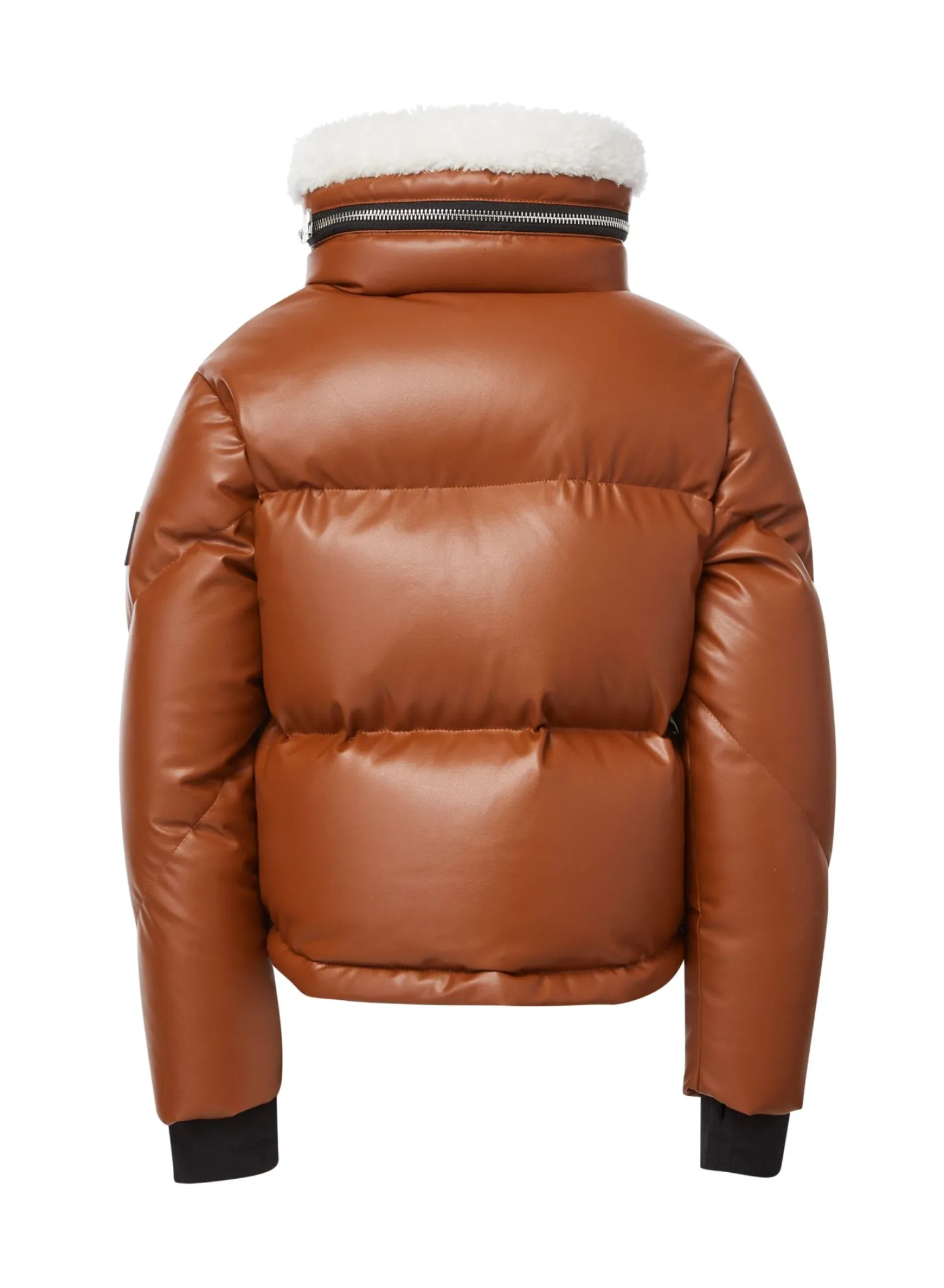 This Quilted, Down Puffer Jacket Is Crafted From A Luxurious Vegan Faux Leather, And Filled With Down To Achieve Warmth And An Ultra Soft Feel. The Vegan Leather Karla Is Lightweight, Wind Resistant, And Water-Repellent. It Features A Stand Collar With A Zipper That Encloses A Roll-Out Hood, A Sherpa (Faux Shearling Collar) Zips At The Cuffs, Spandex Wrist Cuffs With Thumbholes, A Center Front Zip And Snap Placket Closure, And Lower Zip Pockets.