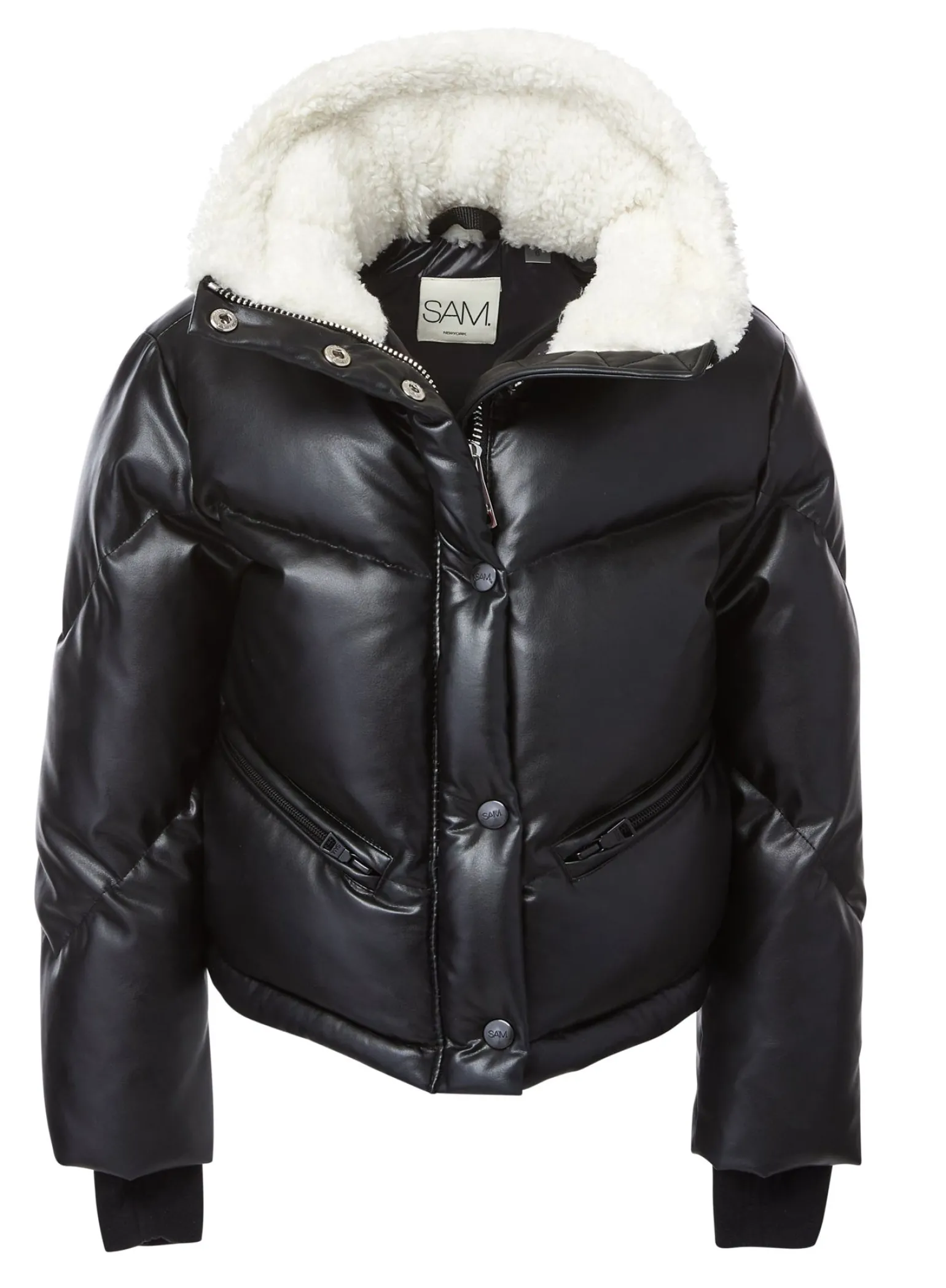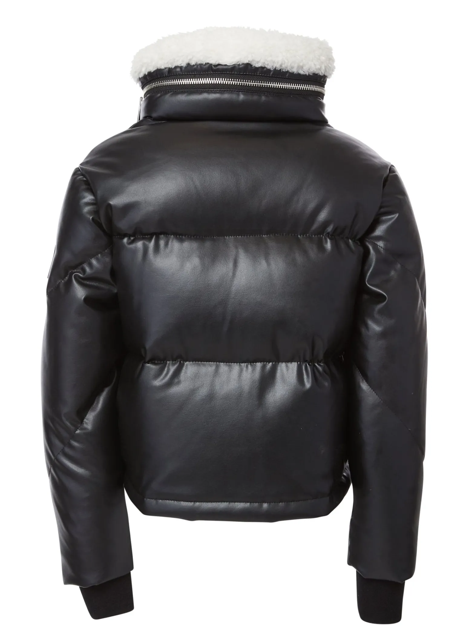 This Quilted, Down Puffer Jacket Is Crafted From A Luxurious Vegan Faux Leather, And Filled With Down To Achieve Warmth And An Ultra Soft Feel. The Vegan Leather Karla Is Lightweight, Wind Resistant, And Water-Repellent. It Features A Stand Collar With A Zipper That Encloses A Roll-Out Hood, A Sherpa (Faux Shearling Collar) Zips At The Cuffs, Spandex Wrist Cuffs With Thumbholes, A Center Front Zip And Snap Placket Closure, And Lower Zip Pockets.
