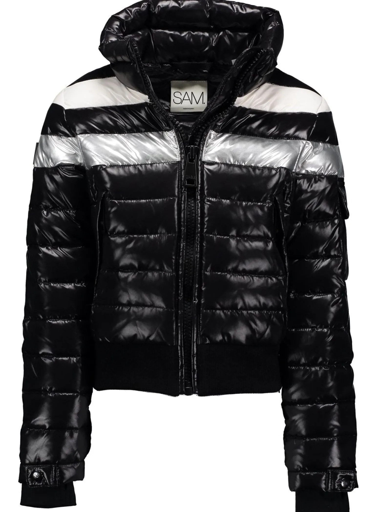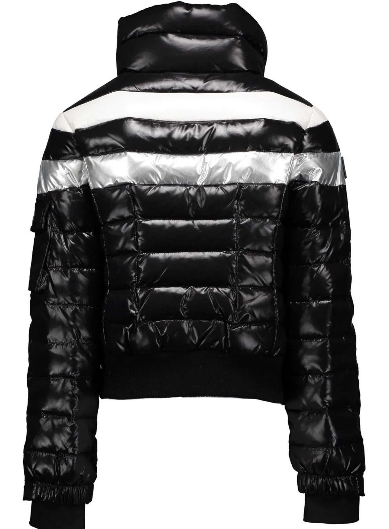 This Quilted, Down Jacket Is Crafted From A Densely Woven Nylon. It Is Lightweight, Yet Protective From Wind And Water, And Filled With Fine White Goose Down To Achieve Warmth And An Ultra Soft Feel. The Starburst Features 3 Multicolored Stripes Across The Chest, A Stand Collar, A Knit Waistband, Fleece Wrist Cuffs With Thumbholes, Center Front Zip Closure, Lower Zip Pockets, And Snap Sleeve Pocket Detail.