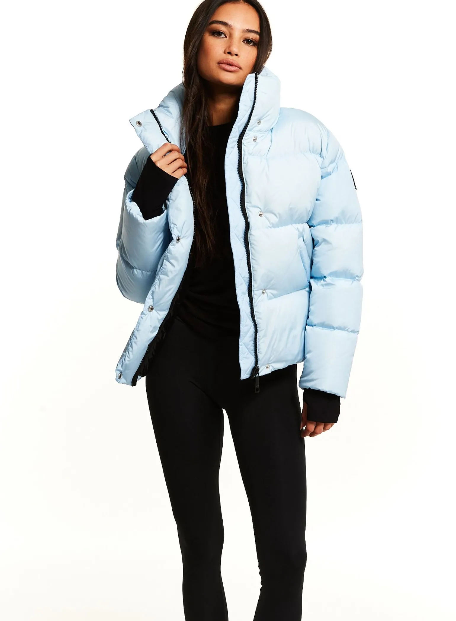This Down Puffer Jacket Is Crafted From A Densely Woven Nylon, And Filled With Fine White Goose Down To Achieve Warmth And An Ultra Soft Feel. The Andi Is Intended To Fit A Bit Oversized With A Boxy Yet Flattering Fit. It Is Lightweight, Wind Resistant, And Water-Repellent. The Jacket Features Tonal Hardware, Tonal Spandex Wrist Cuffs With Thumbholes, A Secondary Color Lining, A Stand Collar, Center Front Zip And Snap Placket Closure, And Lower Zip Pockets.