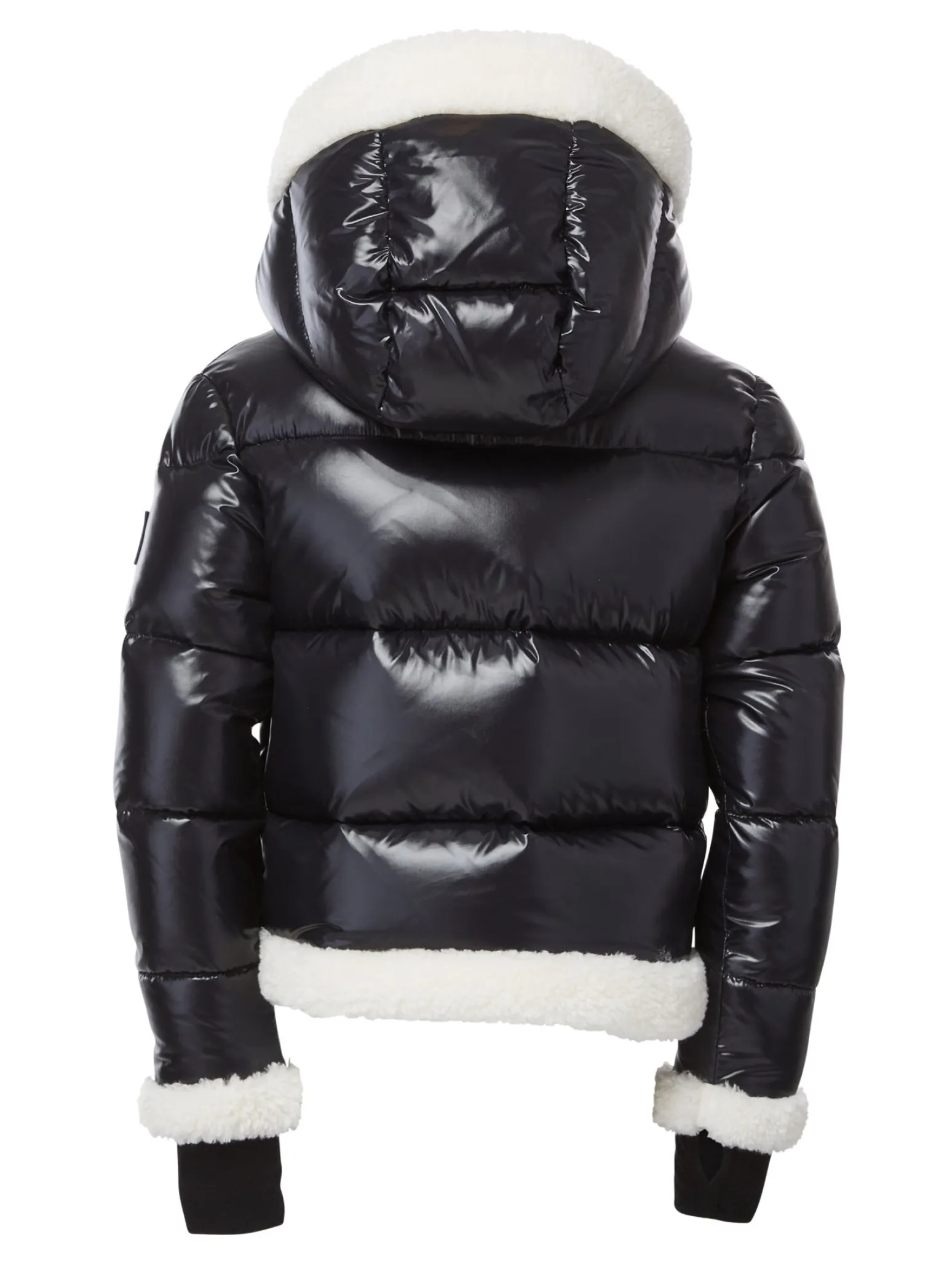This Channel-Quilted, Down Jacket Is Crafted From A Shiny Nylon Fabric. It Is Lightweight, Yet Protective From Wind And Water, And Filled With Down To Achieve Warmth And An Ultra Soft Feel. The Carmen Features Faux Shearling Trim On The Cuffs, A Faux Shearling Stand Collar, A Detachable Faux Shearling Lined Hood, Fleece Wrist Cuffs With Thumbholes, Center Front Zip Closure With Snap Placket, And Lower Zip Pockets.