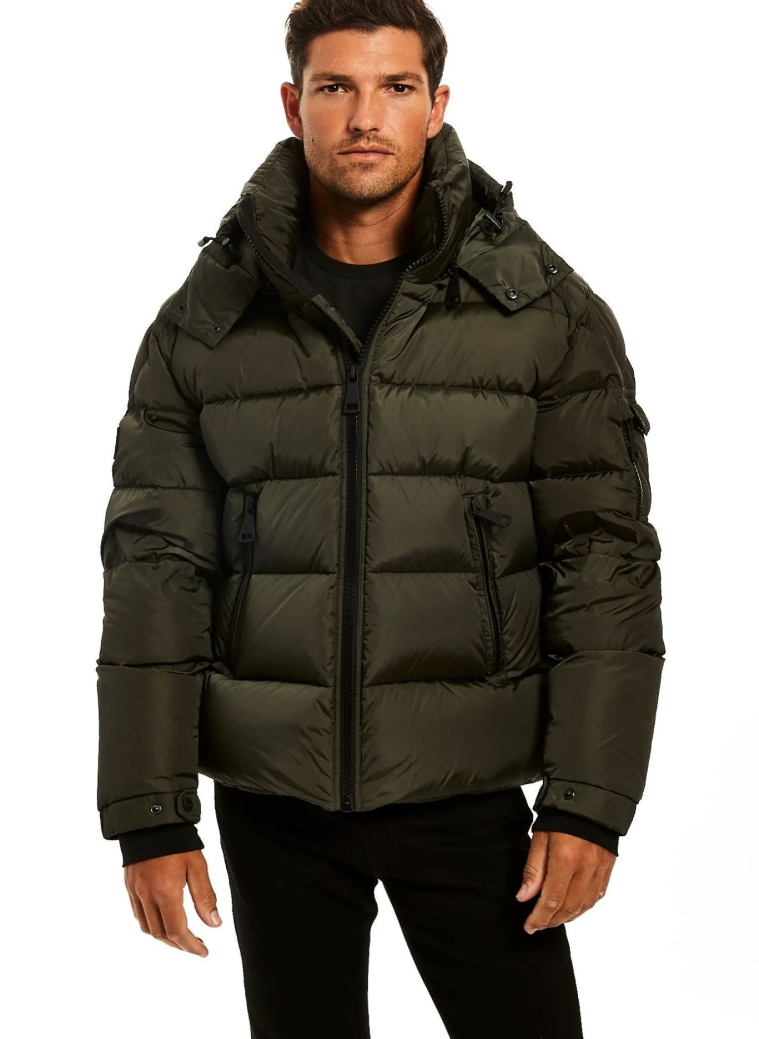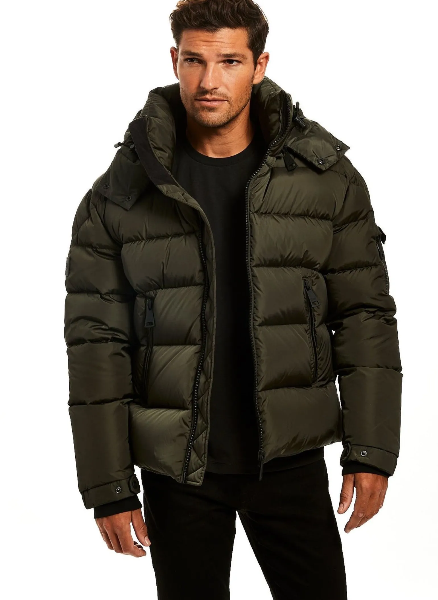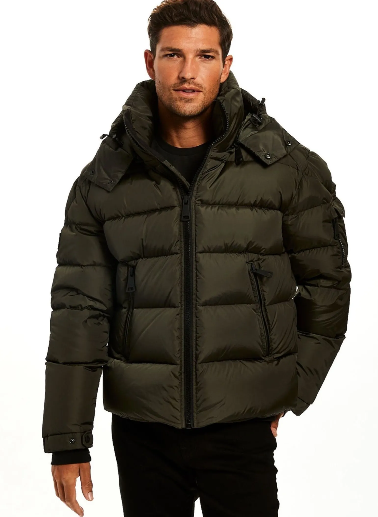 This Quilted, Down Jacket Is Crafted From A Densely Woven Matte Nylon. It Is Lightweight, Wind Resistant, Water Repellent, And Filled With Down To Achieve Warmth And An Ultra Soft Feel. The Coat Features A Stand Collar, A Detachable Hood, Center Front Zip Closure, Neoprene Storm Cuffs, And 2 Lower Microfleece Lined Zip Pockets.