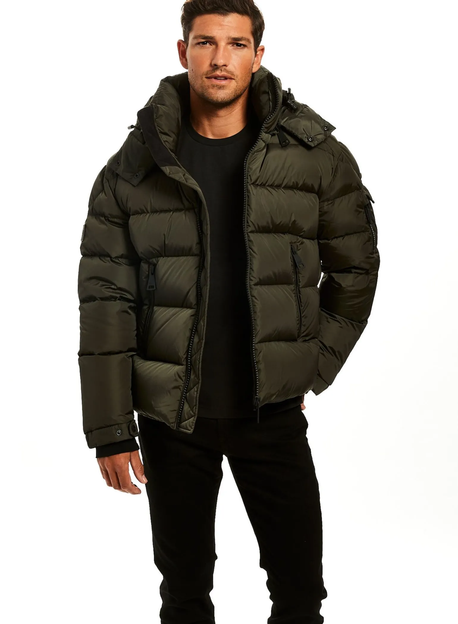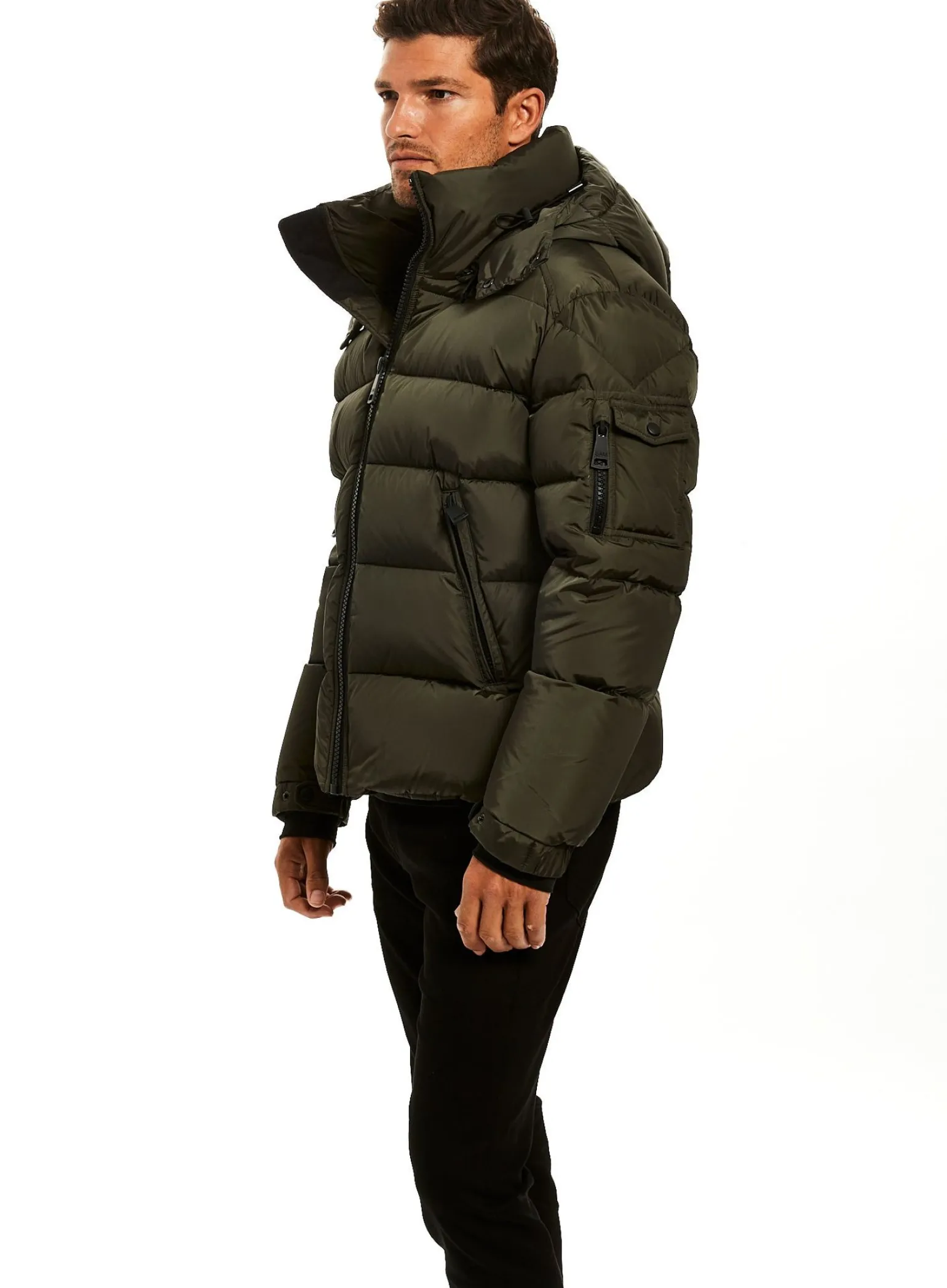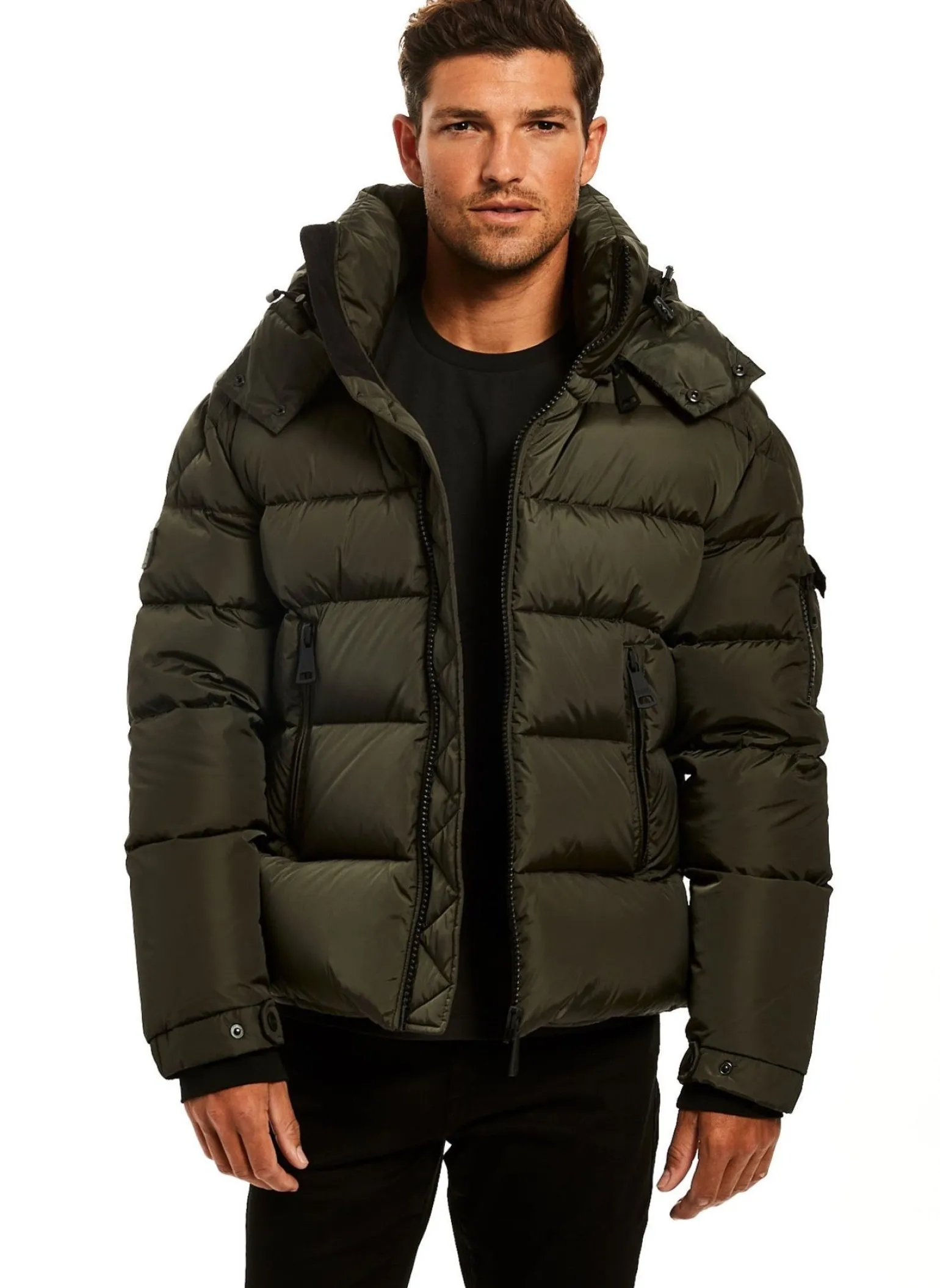 This Quilted, Down Jacket Is Crafted From A Densely Woven Matte Nylon. It Is Lightweight, Wind Resistant, Water Repellent, And Filled With Down To Achieve Warmth And An Ultra Soft Feel. The Coat Features A Stand Collar, A Detachable Hood, Center Front Zip Closure, Neoprene Storm Cuffs, And 2 Lower Microfleece Lined Zip Pockets.