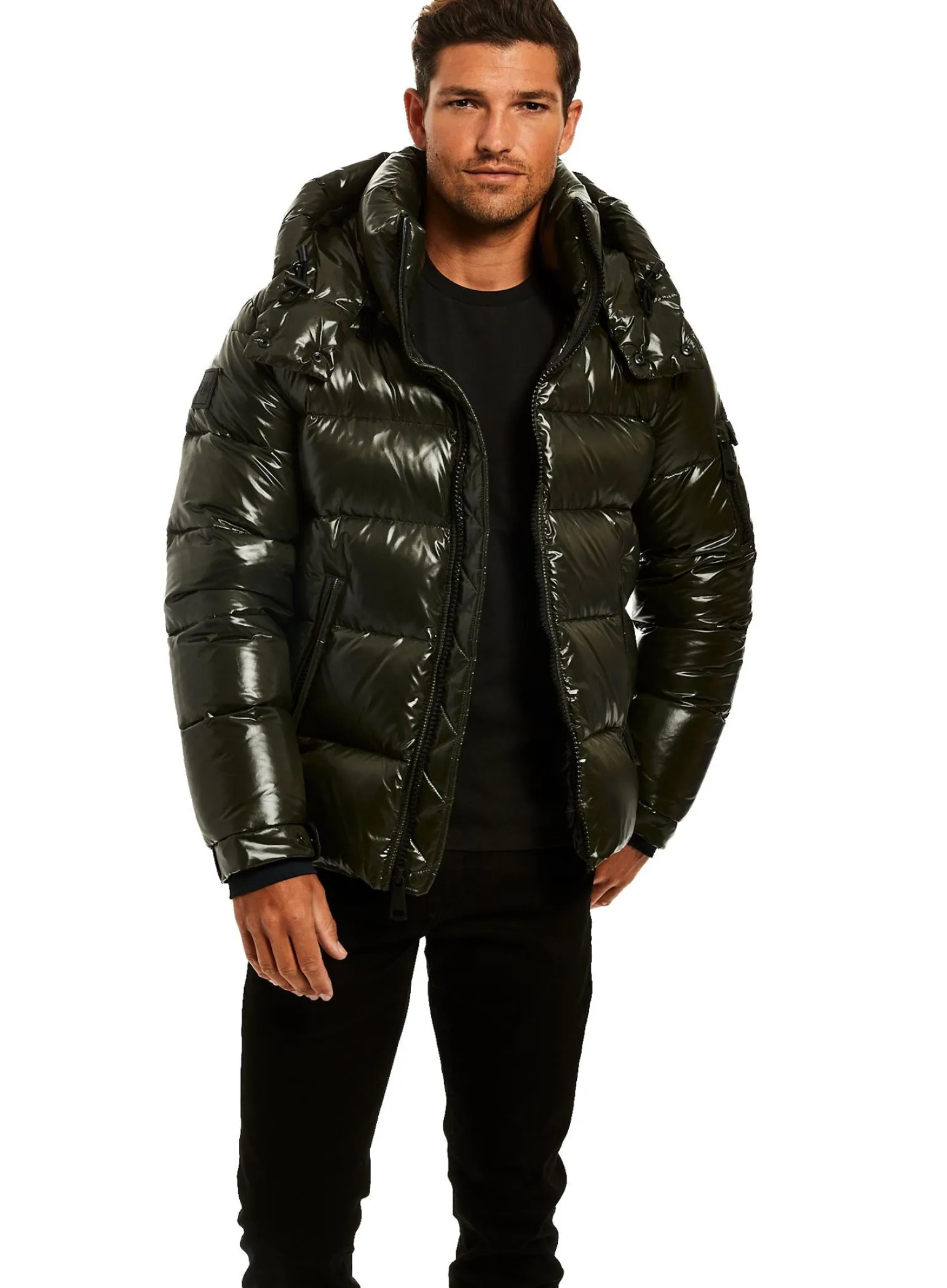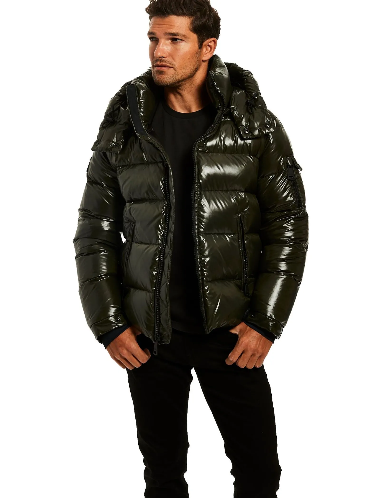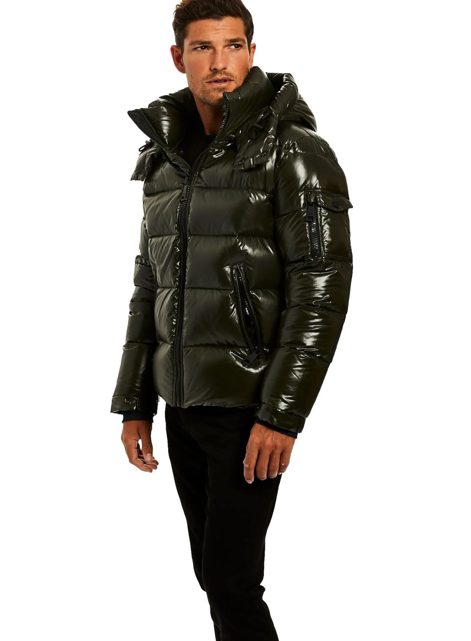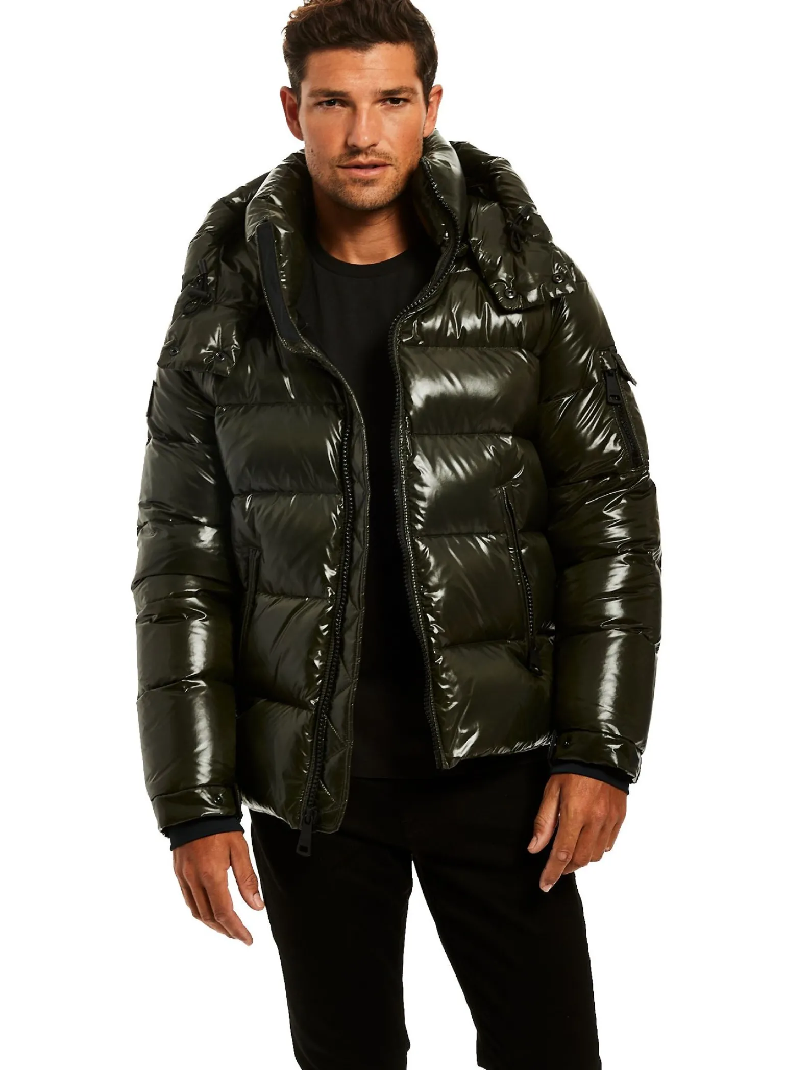 This Quilted, Down Jacket Is Crafted From A Densely Woven Nylon. It Is Lightweight, Wind Resistant, Water Repellent, And Filled With Down To Achieve Warmth And An Ultra Soft Feel. The Coat Features A Stand Collar, A Detachable Hood, Center Front Zip Closure, Neoprene Storm Cuffs, And 2 Lower Microfleece Lined Zip Pockets.