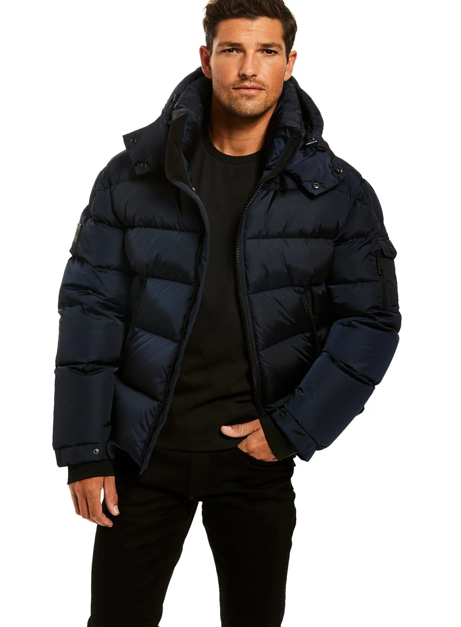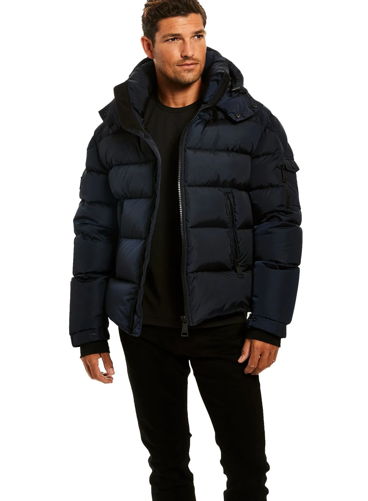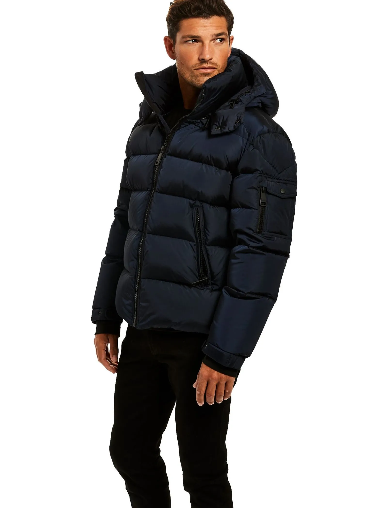 This Quilted, Down Jacket Is Crafted From A Densely Woven Matte Nylon. It Is Lightweight, Wind Resistant, Water Repellent, And Filled With Down To Achieve Warmth And An Ultra Soft Feel. The Coat Features A Stand Collar, A Detachable Hood, Center Front Zip Closure, Neoprene Storm Cuffs, And 2 Lower Microfleece Lined Zip Pockets.