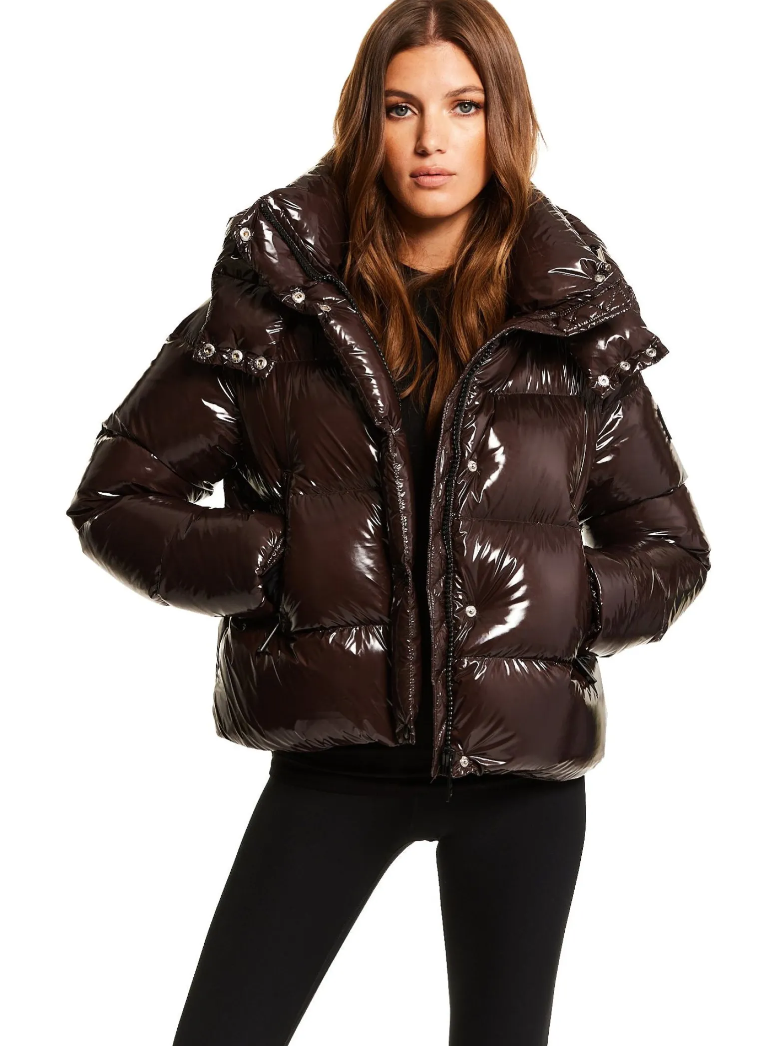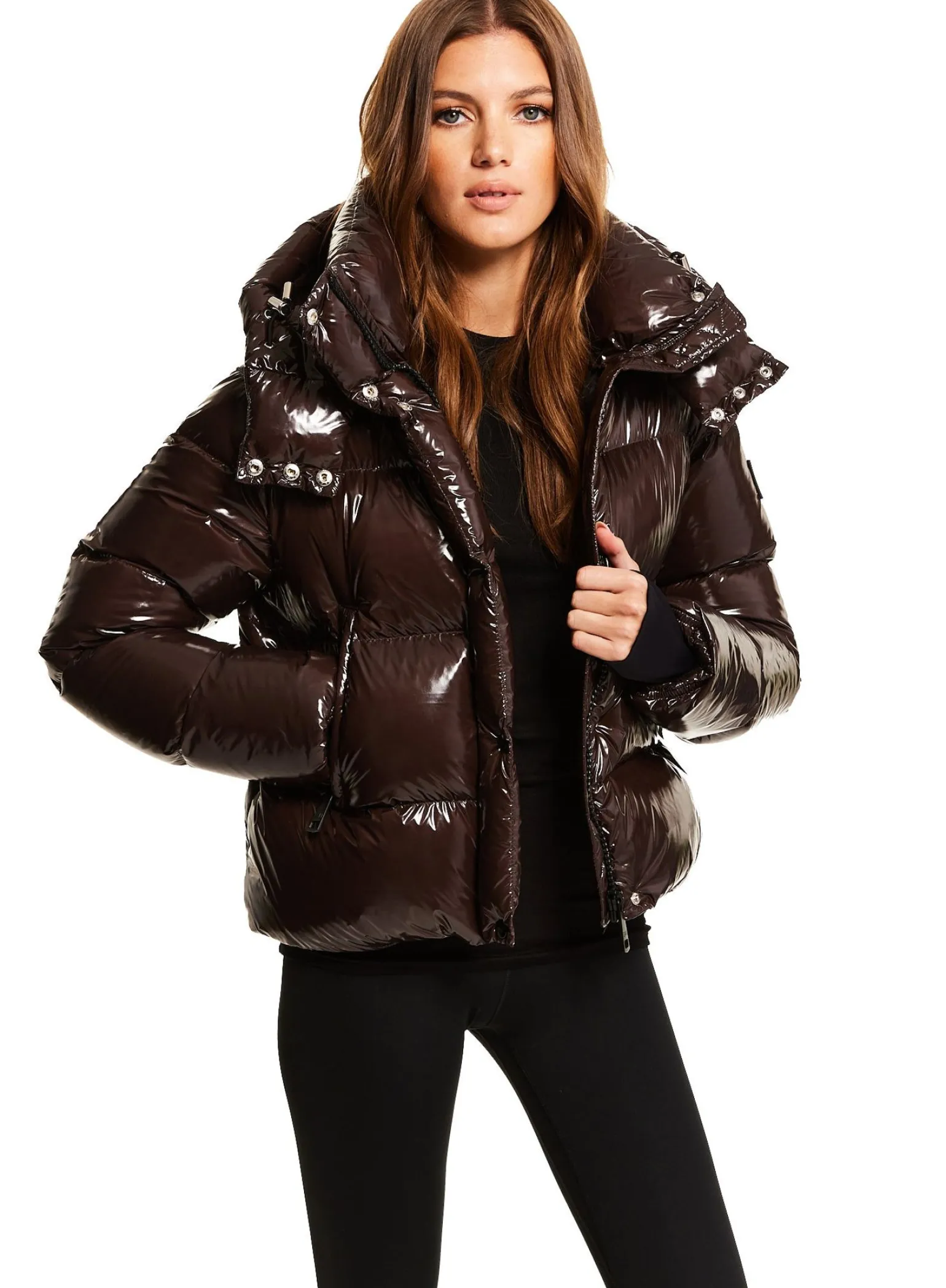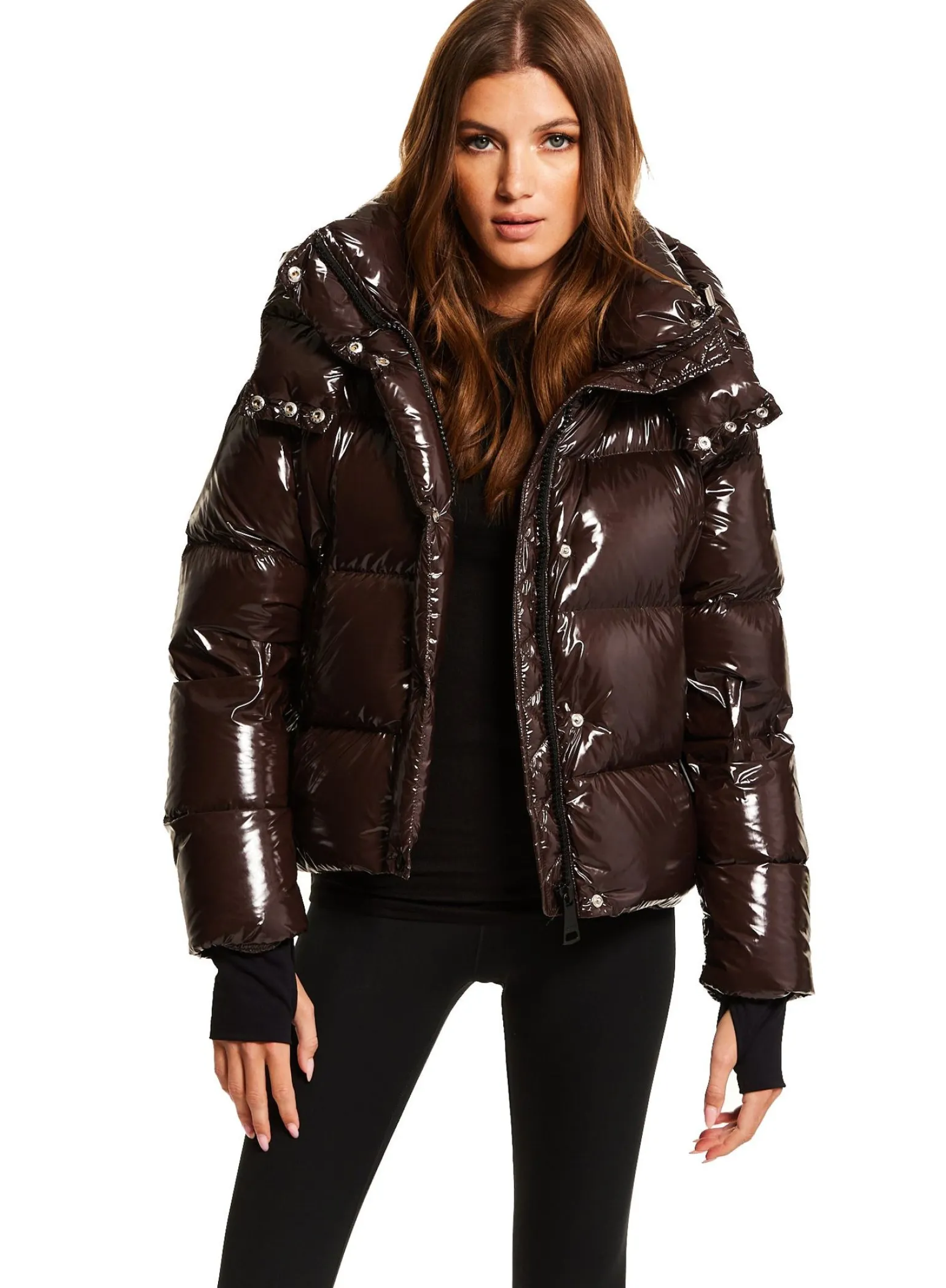 This Cropped Puffer Jacket Is Crafted From A Densely Woven Nylon Yarn, And Filled With Down To Achieve Warmth And An Ultra Soft Feel. It Is Lightweight, Wind Resistant, And Water-Repellent. The Jordy Features A Stand Collar, A Detachable Zip Off Hood, Spandex Wrist Cuffs With Thumbholes, Center Front Zip And Snap Placket Closure, And Lower Zip Pockets.