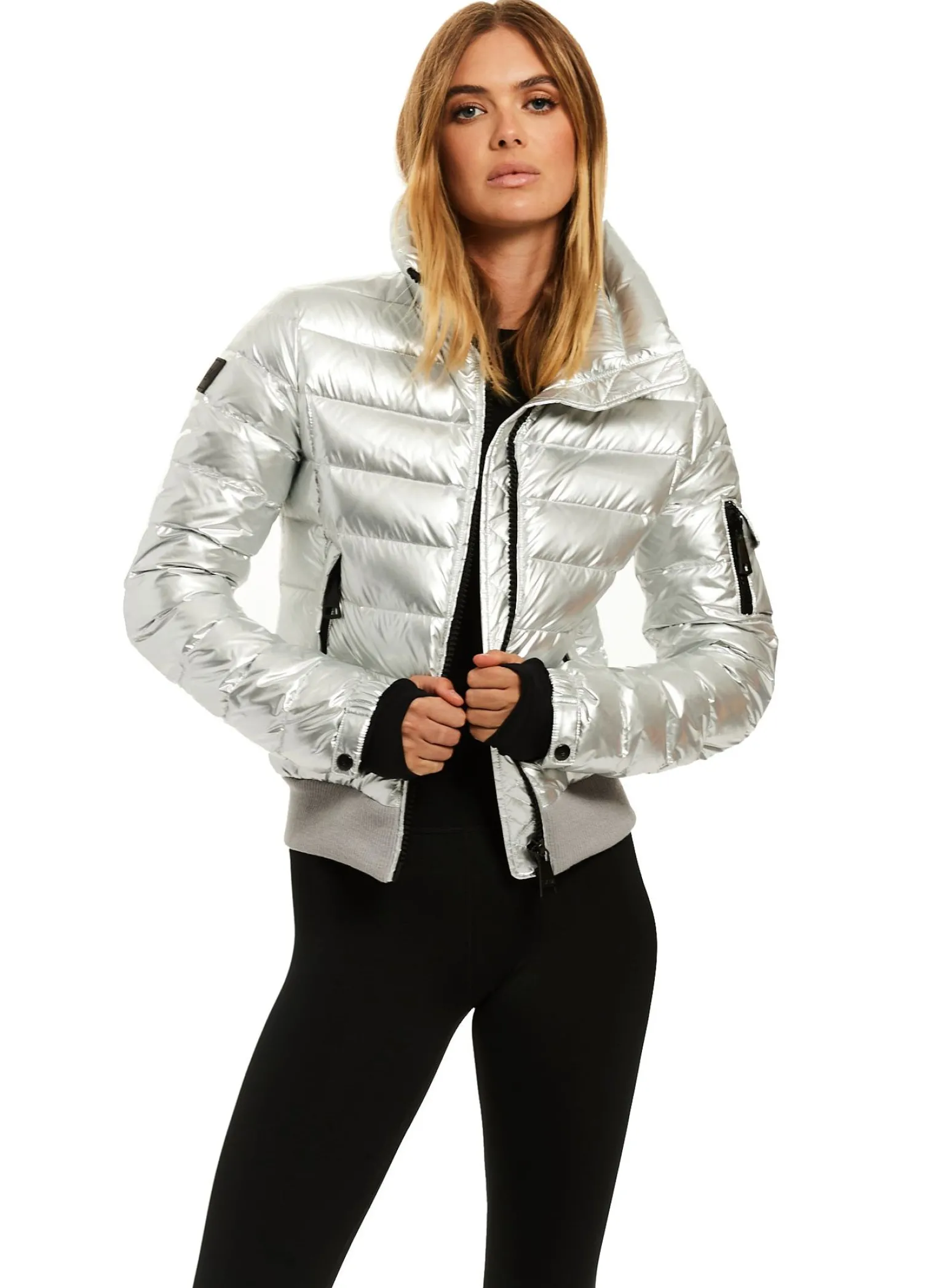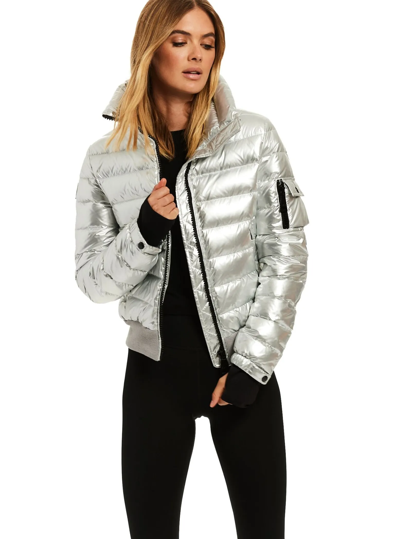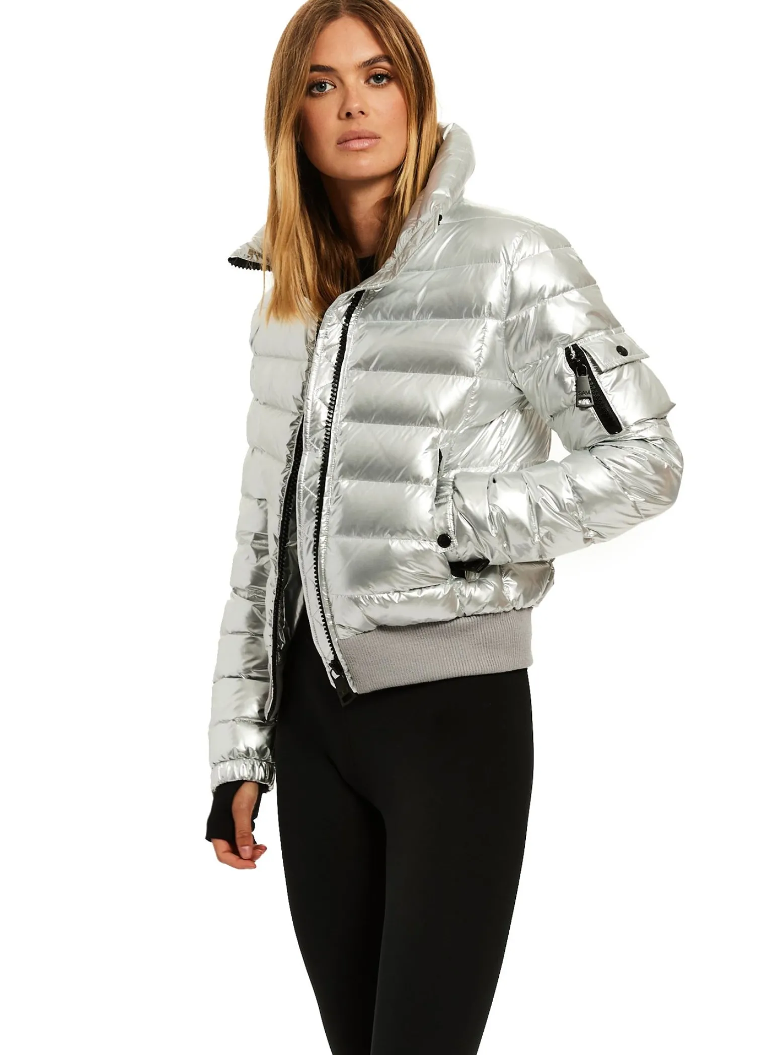 This Quilted, Bomber Style, Down Jacket Is Crafted From A Densely Woven Nylon, And Filled With Fine White Duck Down To Achieve Warmth And An Ultra Soft Feel. The Luna Is Lightweight, Wind Resistant, And Water Repellent, Making It Perfect For Year-Round Wear And Function. It Features A Stand Collar, Center Front Zip Closure, 3 Stripes Across The Chest, Arms, And Back, Spandex Thumbhole Cuffs, 2 Lower Zip Pockets, Snap Sleeve And Pocket Detail, And A Knit Waistband.