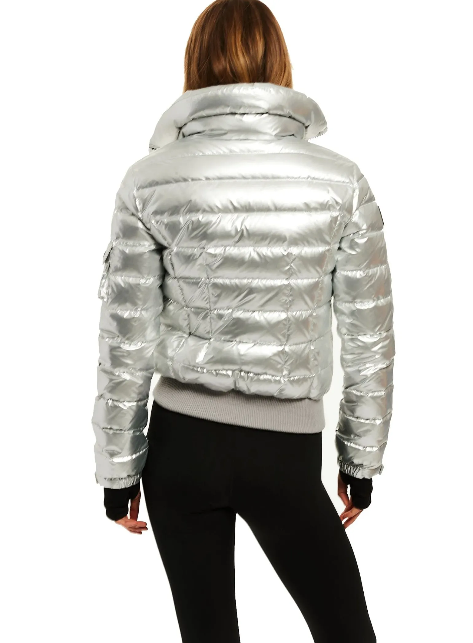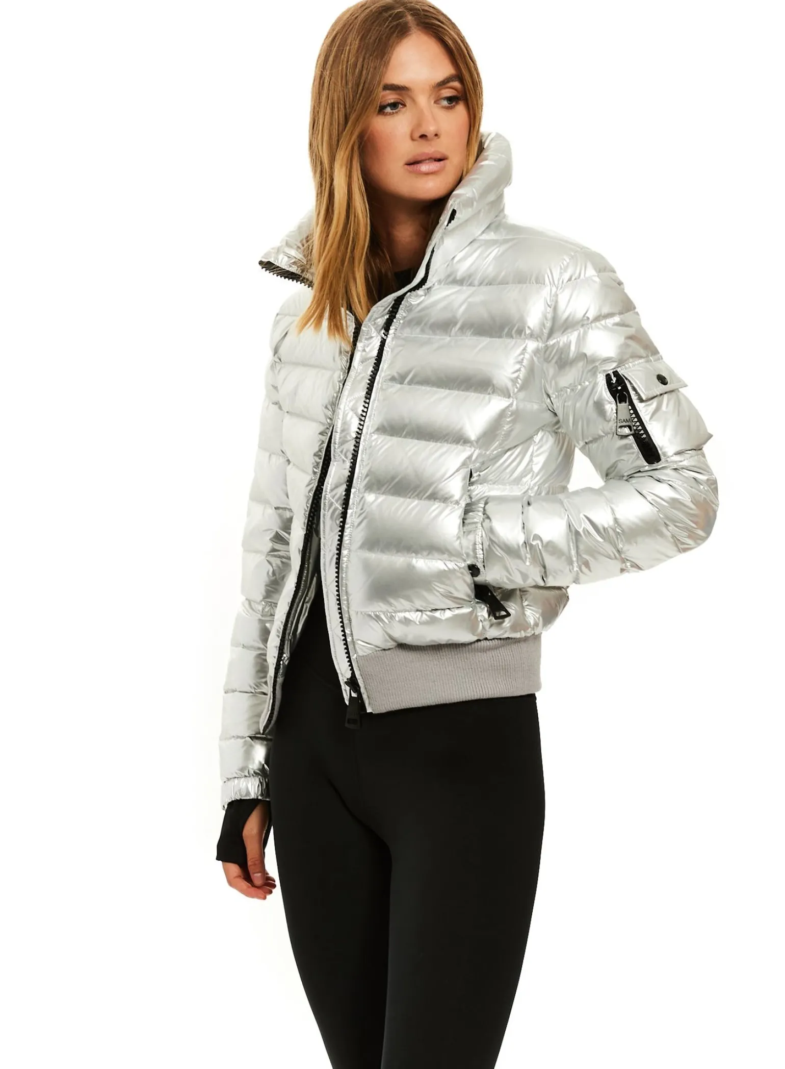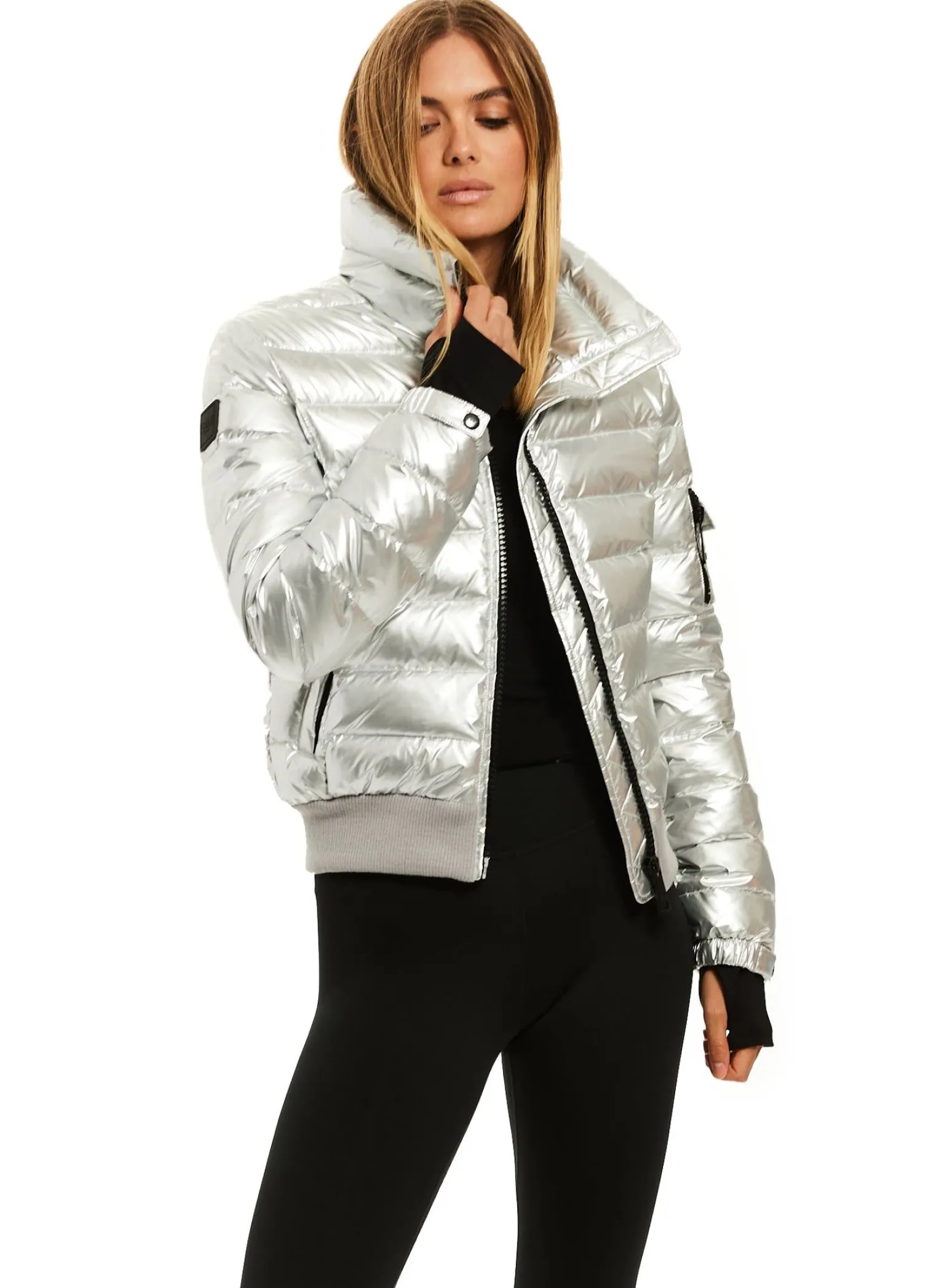 This Quilted, Bomber Style, Down Jacket Is Crafted From A Densely Woven Nylon, And Filled With Fine White Duck Down To Achieve Warmth And An Ultra Soft Feel. The Luna Is Lightweight, Wind Resistant, And Water Repellent, Making It Perfect For Year-Round Wear And Function. It Features A Stand Collar, Center Front Zip Closure, 3 Stripes Across The Chest, Arms, And Back, Spandex Thumbhole Cuffs, 2 Lower Zip Pockets, Snap Sleeve And Pocket Detail, And A Knit Waistband.