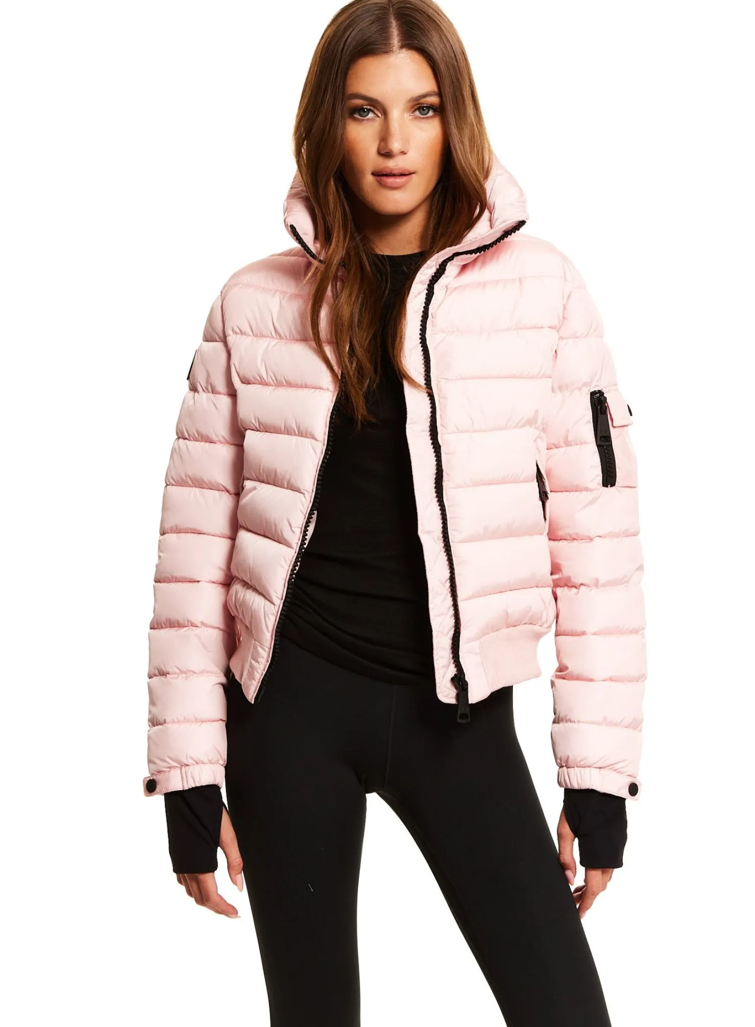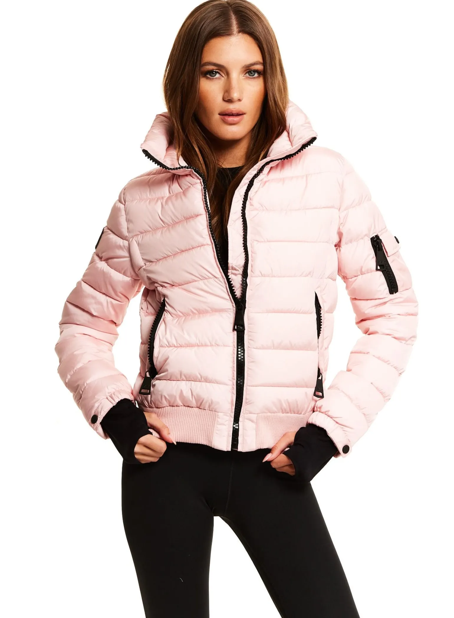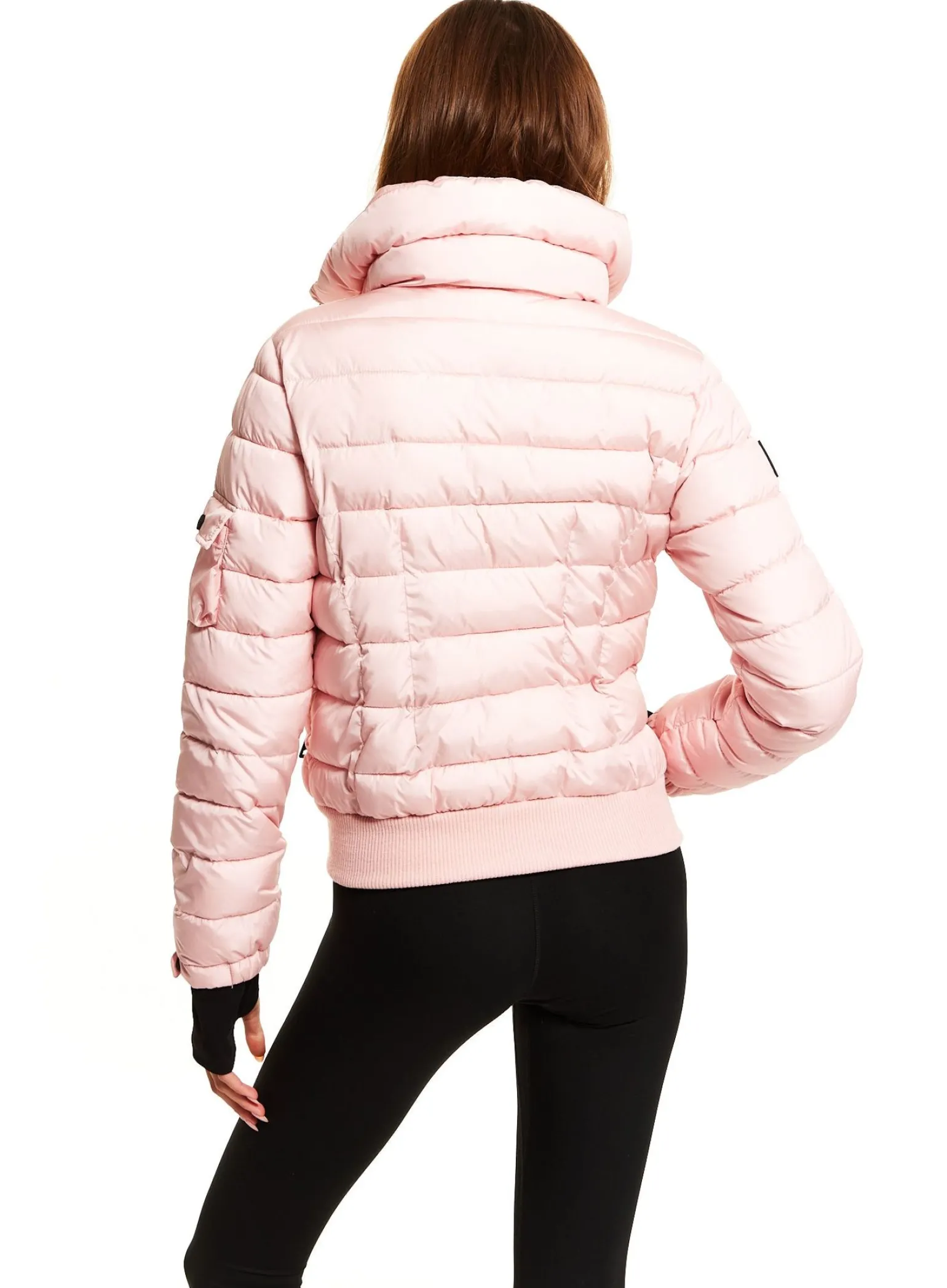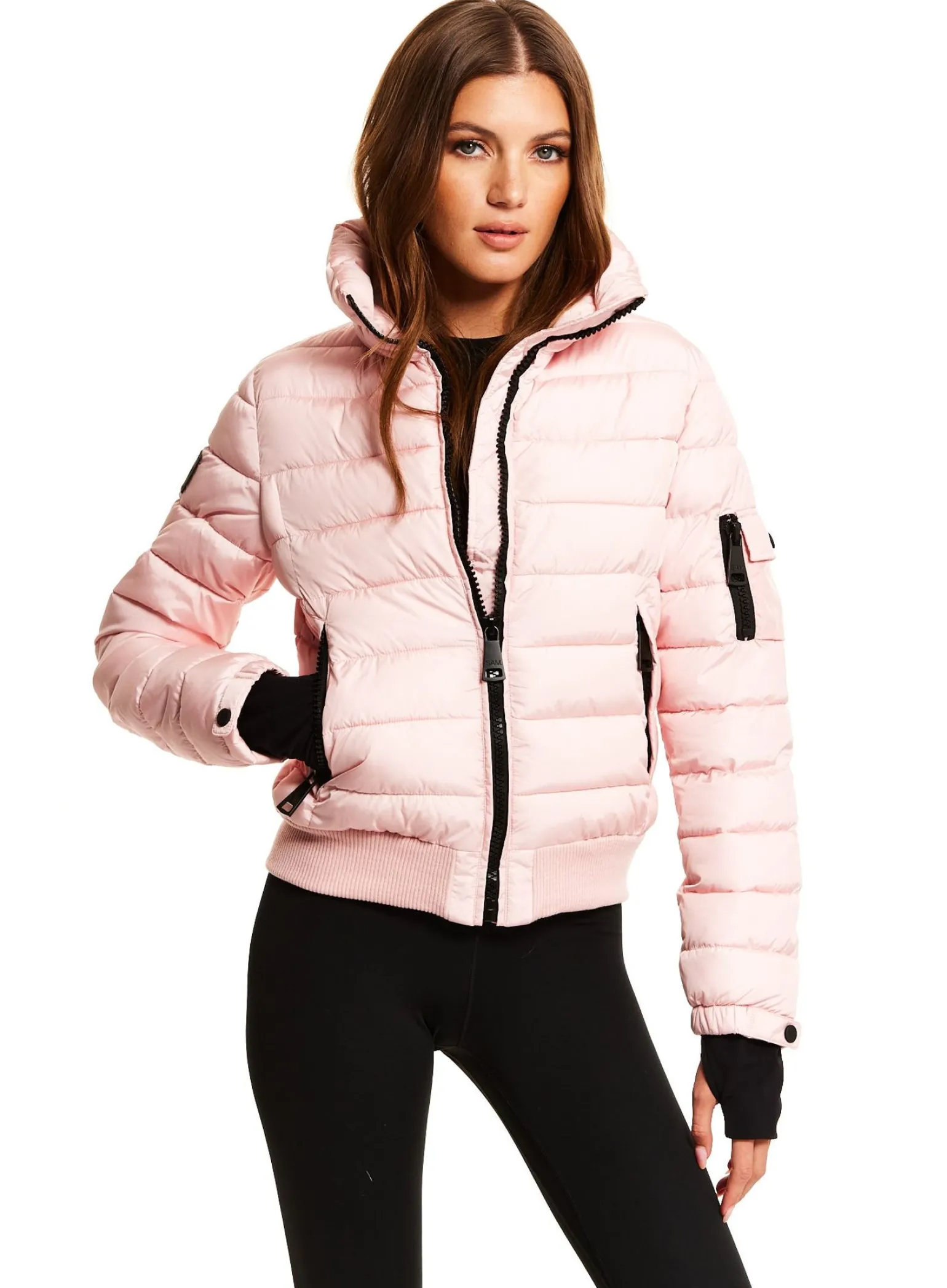 This Quilted, Bomber Style, Down Jacket Is Crafted From A Densely Woven Nylon, And Filled With Down To Achieve Warmth And An Ultra Soft Feel. The Luna Is Lightweight, Wind Resistant, And Water Repellent, Making It Perfect For Year-Round Wear And Function. It Features A Stand Collar, Center Front Zip Closure, 3 Stripes Across The Chest, Arms, And Back, Spandex Thumbhole Cuffs, 2 Lower Zip Pockets, Snap Sleeve And Pocket Detail, And A Knit Waistband.