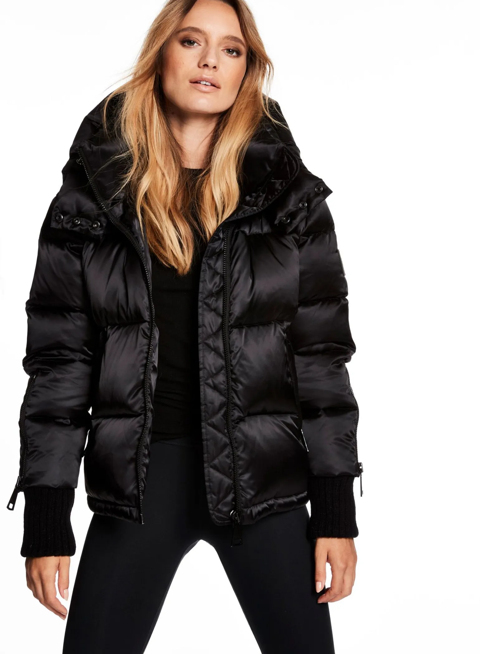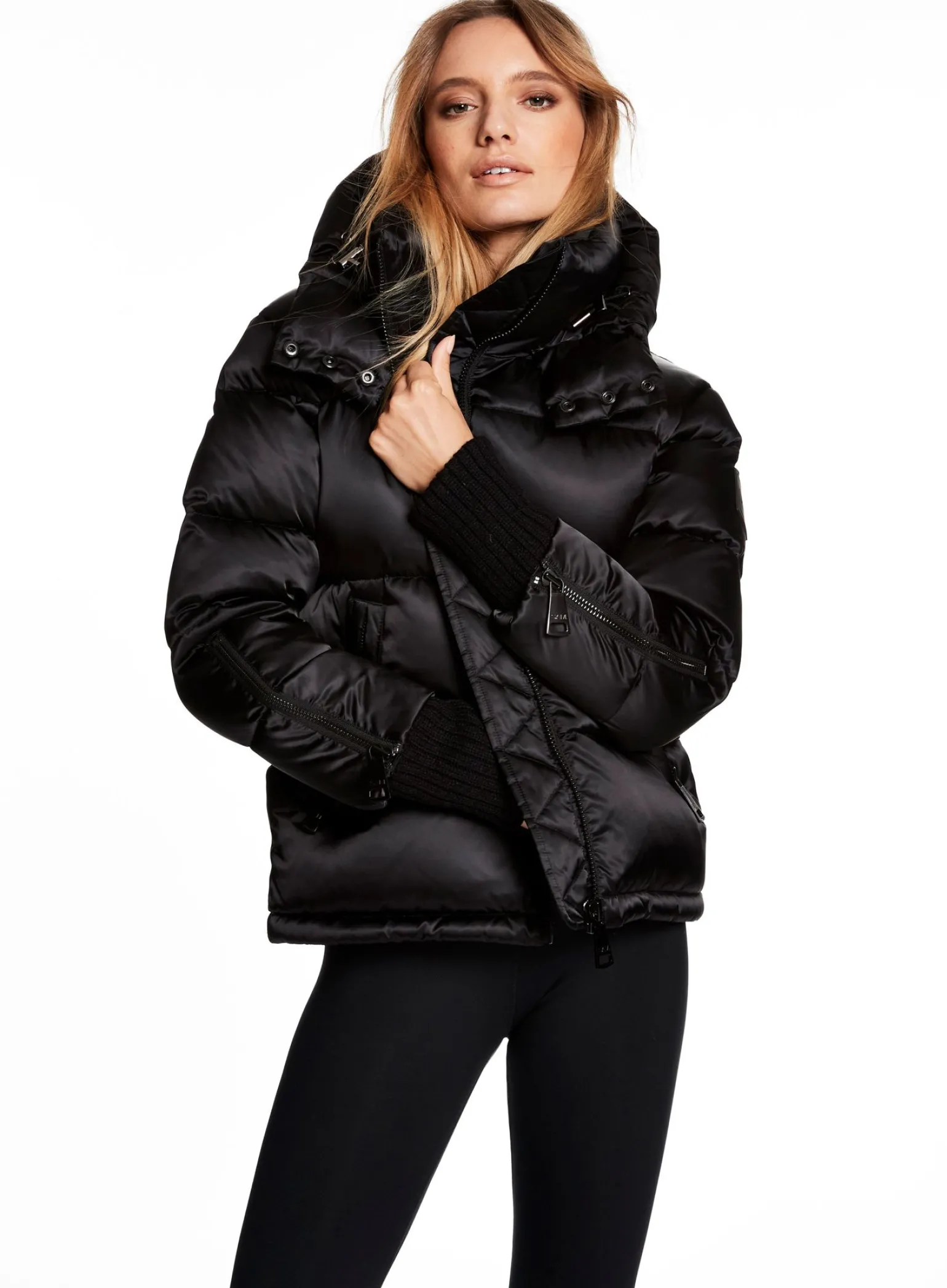This Satin Puffer Is Crafted From A Densely Woven Nylon, And Filled With Down To Achieve Warmth And An Ultra Soft Feel. It Is Lightweight, Wind Resistant, And Water Repellent. The Reese Features Cozy Knit Wrist Cuffs, Zips On The Forearm, A Detachable Zip Off Hood, An Adjustable Waistband, Center Front Zip And Snap Closure.