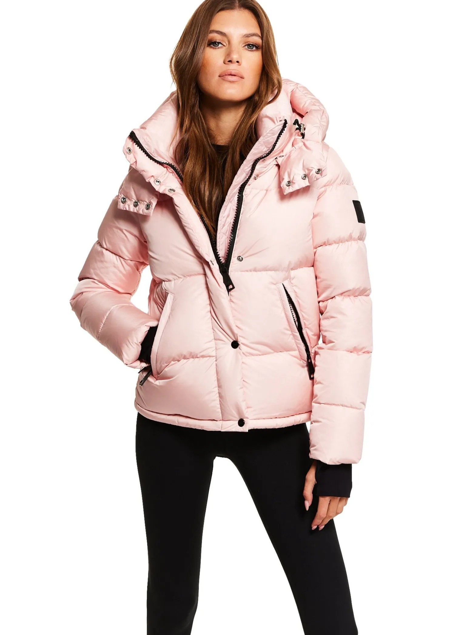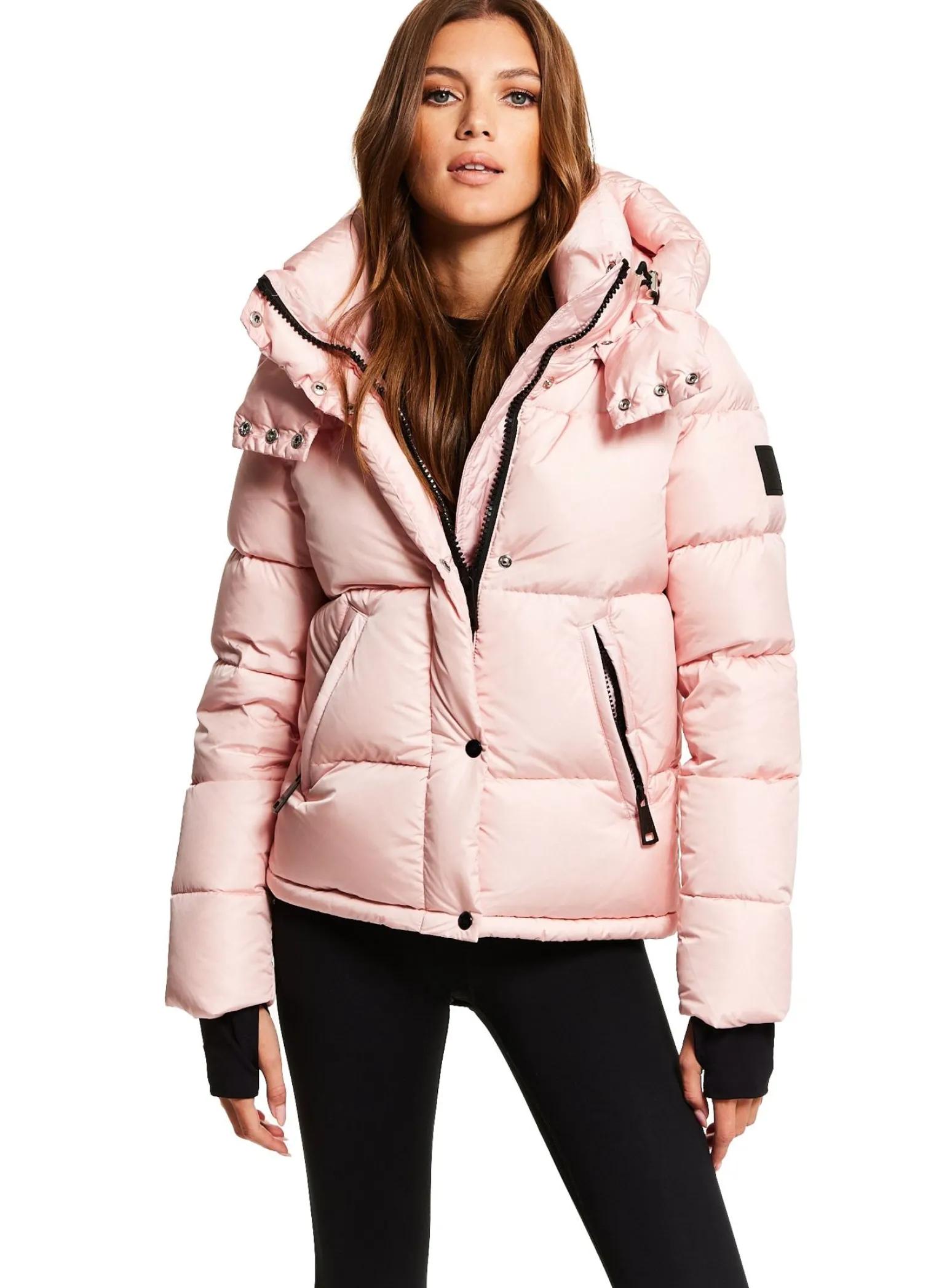 This Hooded Puffer Jacket Is Crafted From A Densely Woven Nylon Yarn, And Filled With Down To Achieve Warmth And An Ultra Soft Feel. It Is Lightweight, Wind Resistant, And Water-Repellent. The Remy Features A Stand Collar, A Detachable Zip Off Hood, Spandex Wrist Cuffs With Thumbholes, Center Front Zip And Snap Placket Closure, And Lower Zip Pockets.
