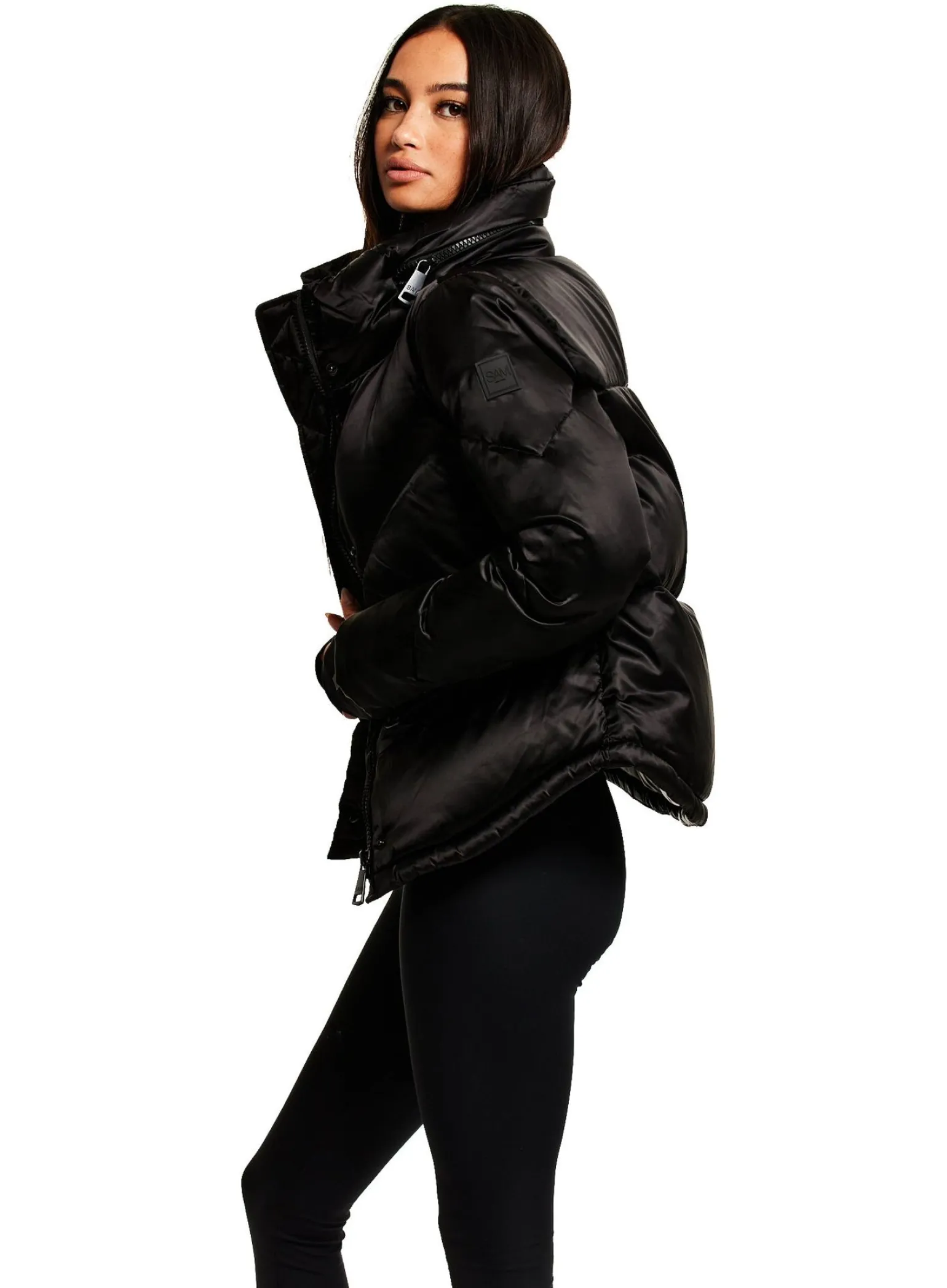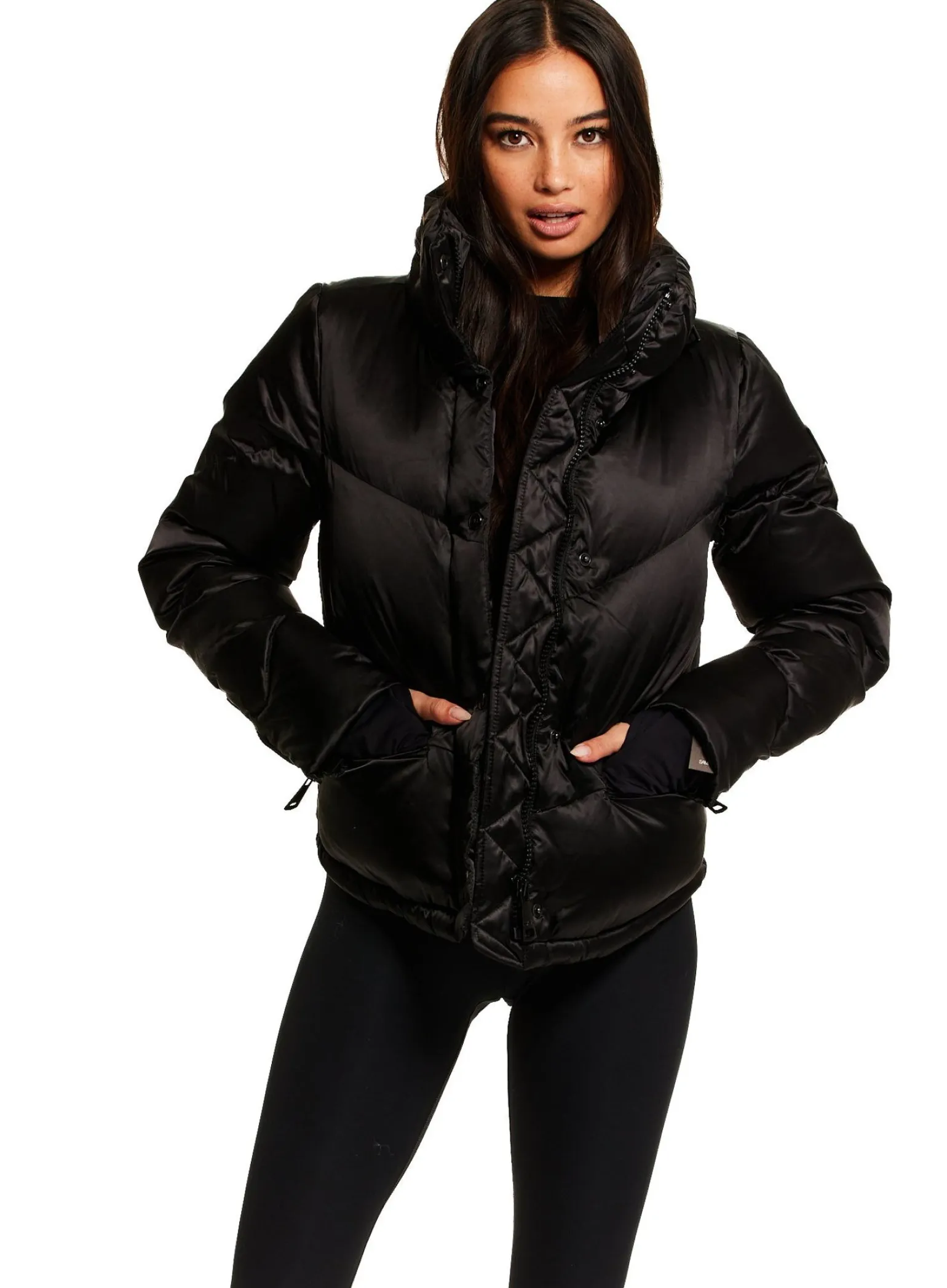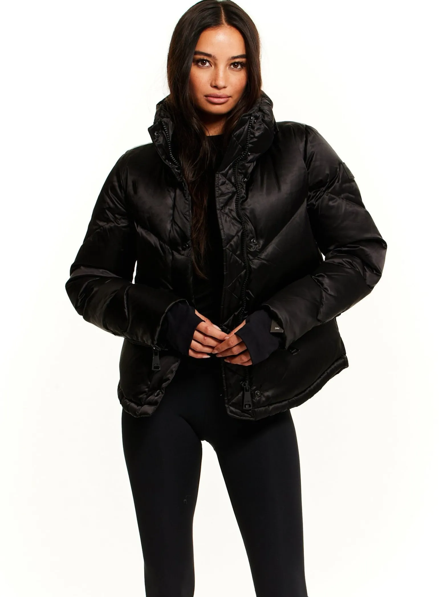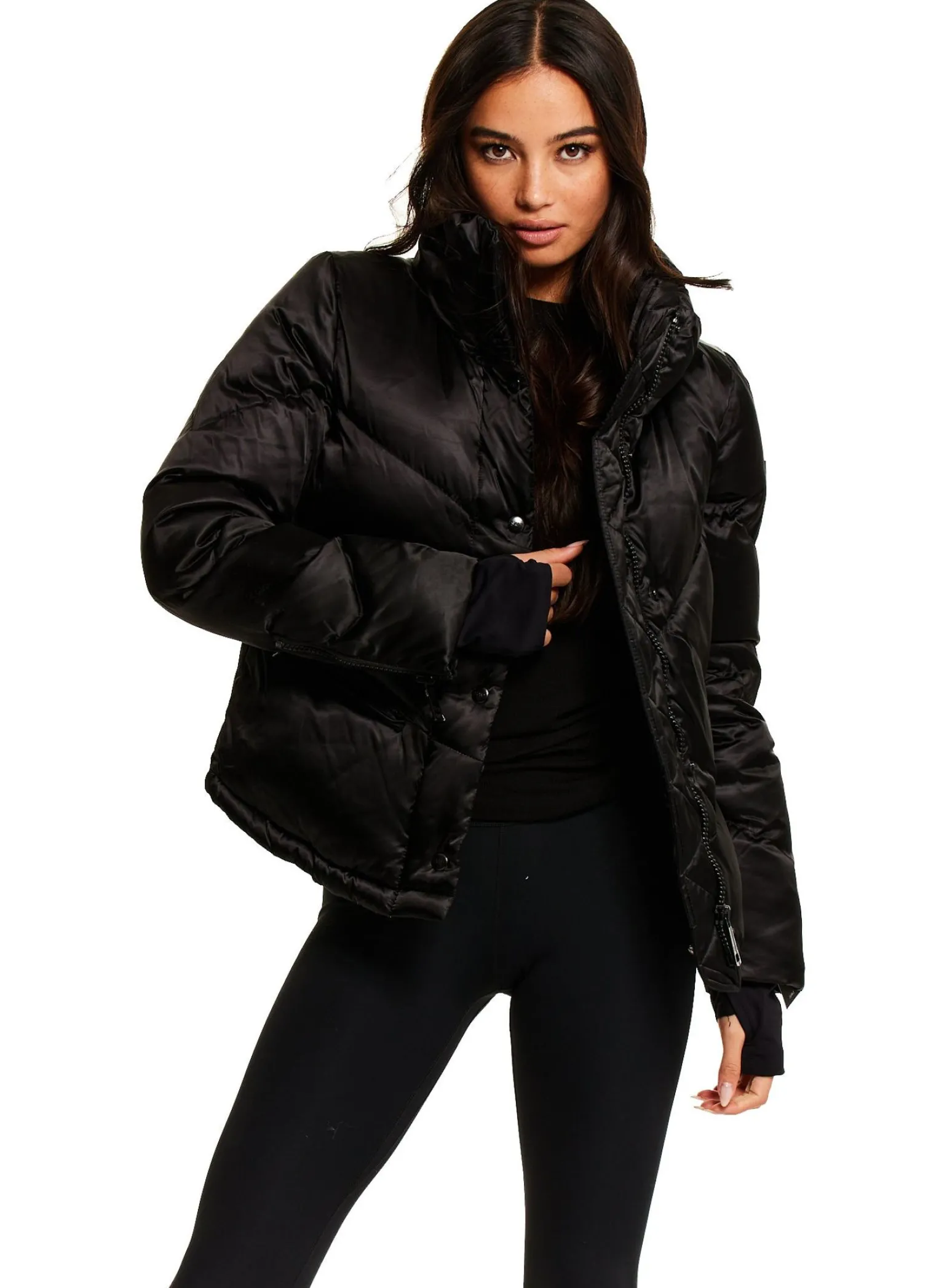 This Quilted, Down Puffer Jacket Is Crafted From A Densely Woven Satin Nylon, And Filled With Down To Achieve Warmth And An Ultra Soft Feel. The Satin Isabel Is Lightweight, Wind Resistant, And Water-Repellent. It Features A Stand Collar, Spandex Wrist Cuffs With Thumbholes, A Center Front Zip And Snap Placket Closure, And Lower Zip Pockets.