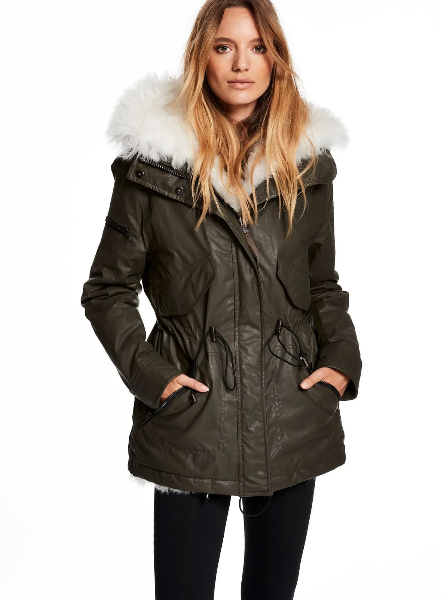 This Cozy And Luxurious, Drawstring Parka Is Crafted From A Fine Cotton Twill, Which Has Been Treated With Three Layers Of Polyurethane Resins. This Coating Makes Our Garment Wind Resistant, Water Repellent, And Easy To Care For. The Shell Fabric Has Also Been Tumbled To Accentuate A Distressed Feel, Which Is Intended To Break In With Wear. This Jacket Can Be Worn Four Ways. Wear The Shearling Liner/Vest Inside, Wear The Shearling Vest Over The Shell For A Layered Look, Wear The Shearling Vest On Its Own, Or Wear The Shell On Its Own. This Jacket Contains 3M Thinsulate Padding In The Sleeves To Ensure Warmth Without Adding Bulk, A Detachable Shearling Lining/Vest With Hood, 2 Upper Flap Pockets, 2 Lower Zip Pockets, An Adjustable Drawstring Waist, And An Adjustable Drawstring Hem.
