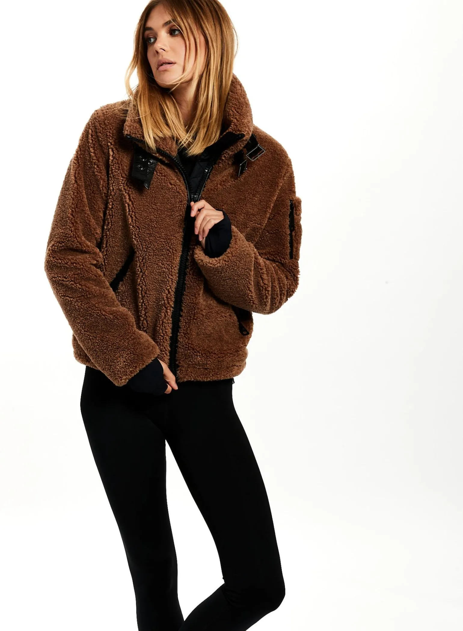 This Easy Every Day Jacket Is Crafted From A Plush Sherpa Fabric (Faux Shearling) With A Relaxed Fit And Ultra Soft Feel. The Denver Is Lightweight, Wind Resistant, And Water-Repellent. It Features 2 Leather Buckles On The Collar, Spandex Wrist Cuffs With Thumbholes, An Adjustable Drawstring Hem, Center Front Zip Closure, And Zip Pockets.