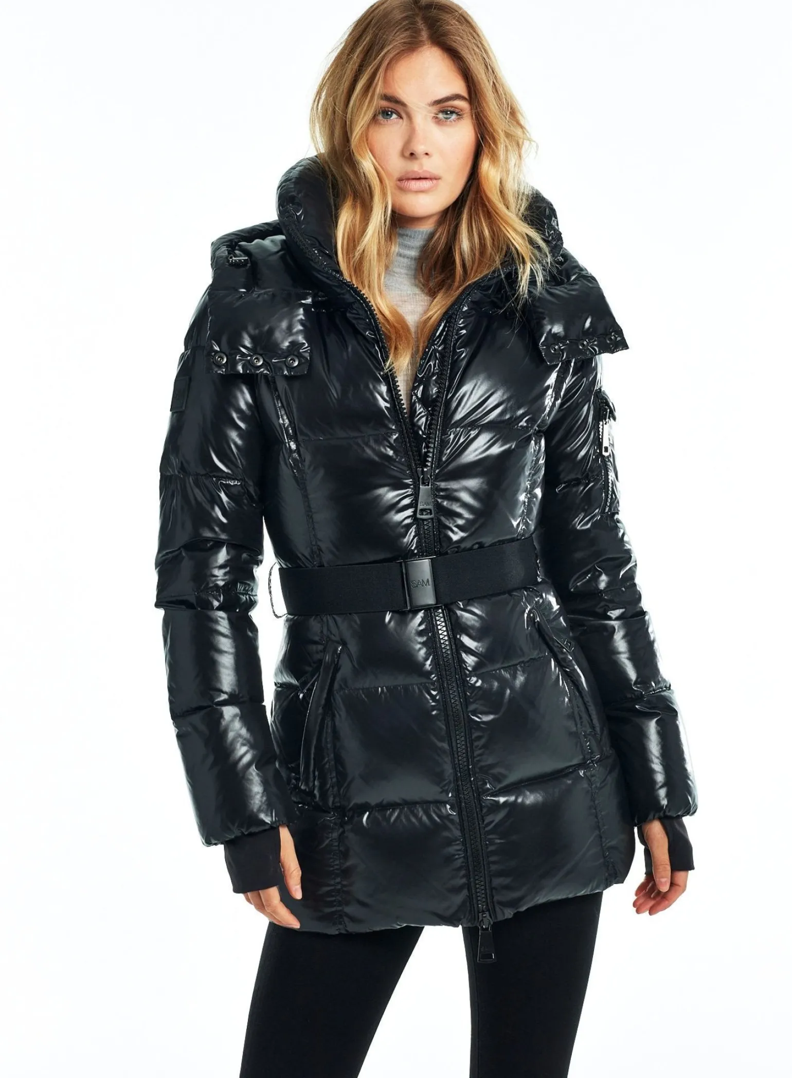 This Mid-Length, Shaped, Down Coat Is Crafted From A Densely Woven Nylon Yarn, And Filled With Down To Achieve Warmth And An Ultra Soft Feel. It Is Lightweight, Wind Resistant, And Water Repellent. The Soho Features Spandex Wrist Cuffs With Thumbholes, A Detachable Zip-Off Hood, A Detachable Belt With Sam Logo Embossed Metal Buckle, 2 Lower Zip Pockets, And Sleeve Pocket Detail.