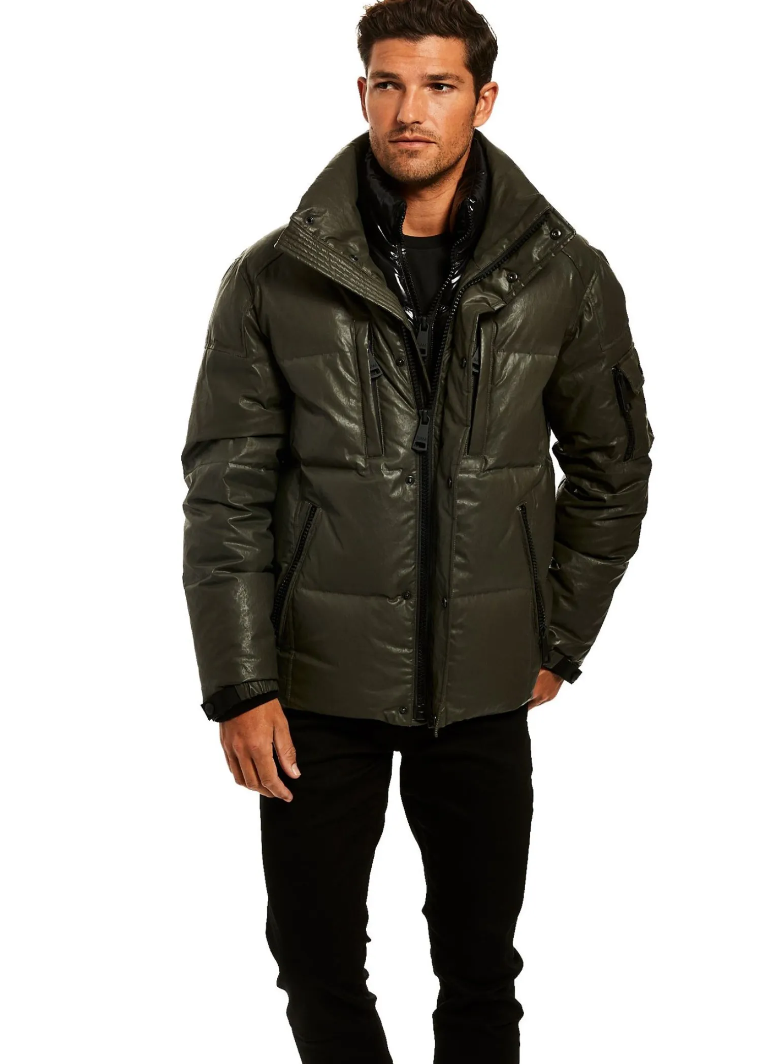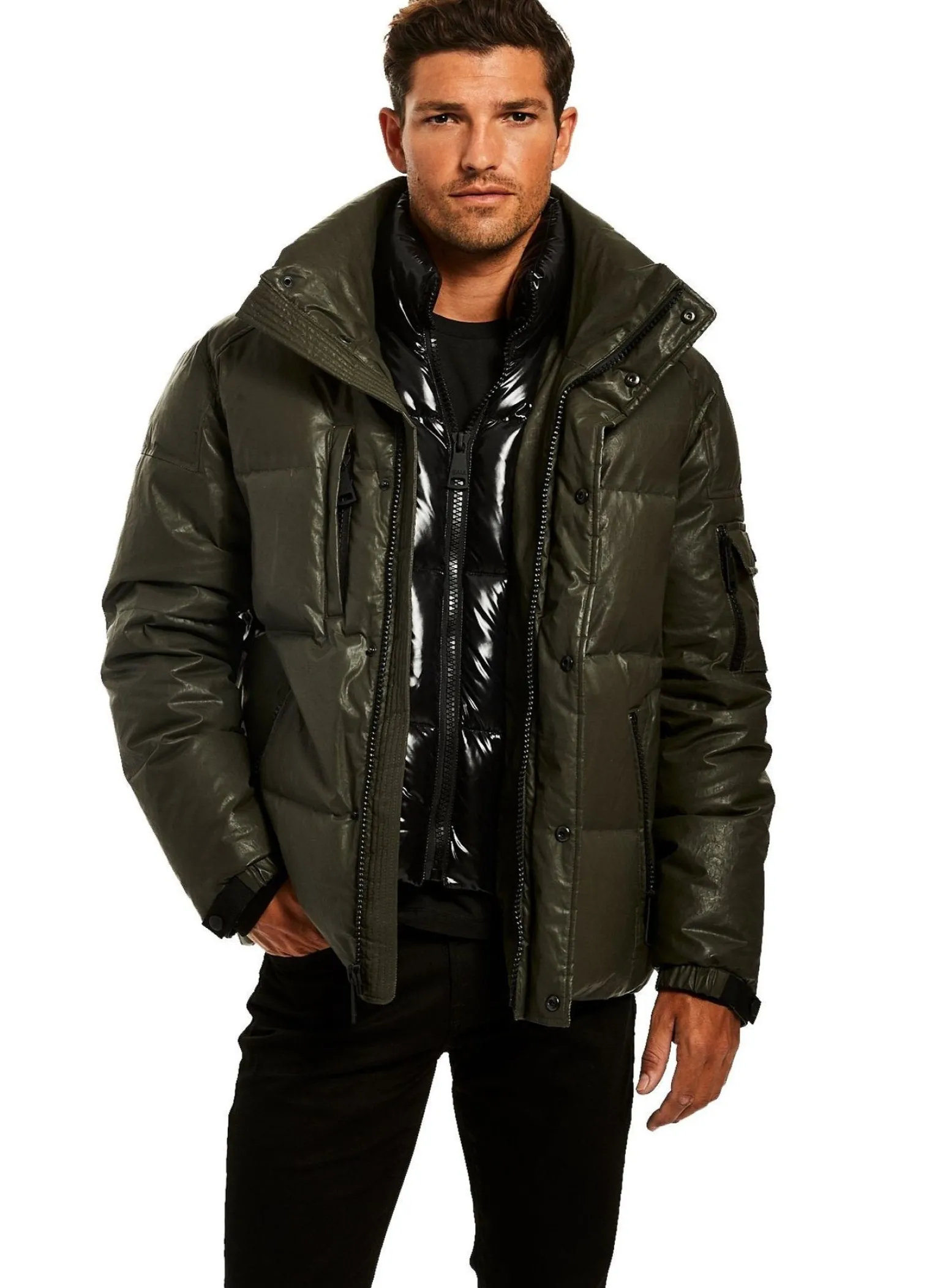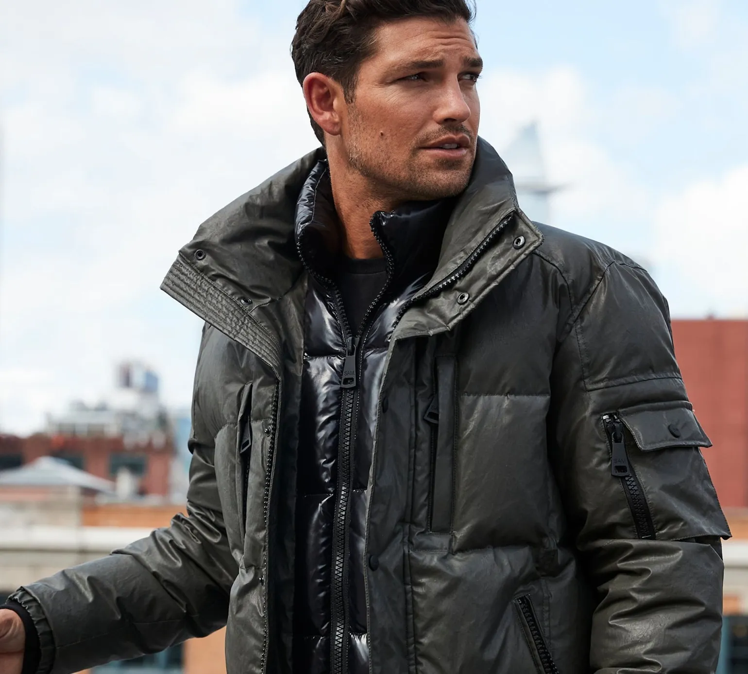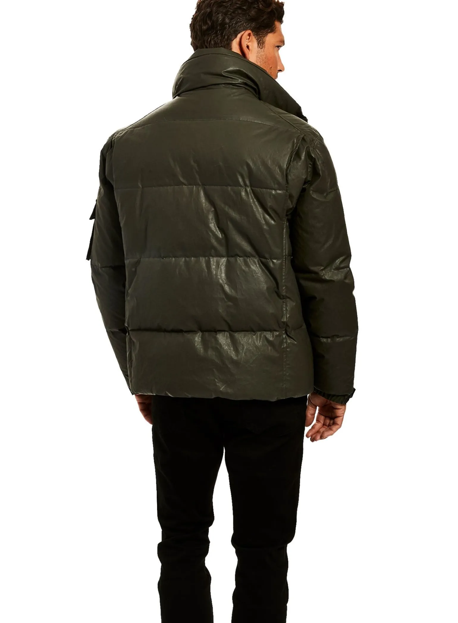 This Quilted, Down Jacket Is Crafted From A Densely Woven Coated Cotton Fabric. It Is Lightweight, Wind Resistant, Water Repellent, And Filled With Down To Achieve Warmth And A Lofty Feel. The Coat Features A Nylon Puffer Bib Stand Collar, Double Center Front Zip Closure With An Attached Bib, Neoprene Storm Cuffs, And 2 Lower Microfleece Lined Zip Pockets.